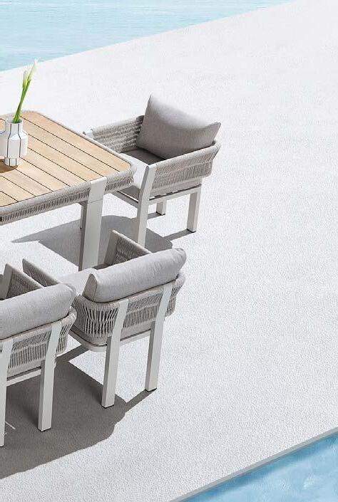 8 ZAGREB PULA ekskluzivna inspiracija Set OLIA, 6 komada 3-sjed s jastucima 238x82cm, 2x fotelja s jastucima 97x82cm, stolić 75x110cm, stolić 75x80cm, bočni stolić 44x47cm, aluminij/tikovina/uže vrtni NAMJEŠTAJ 2023
