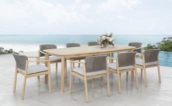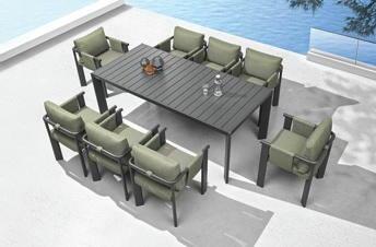 stol 99x220cm, 8x stolica s rukonaslonima i jastucima, akacija