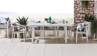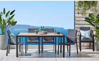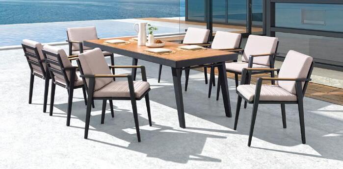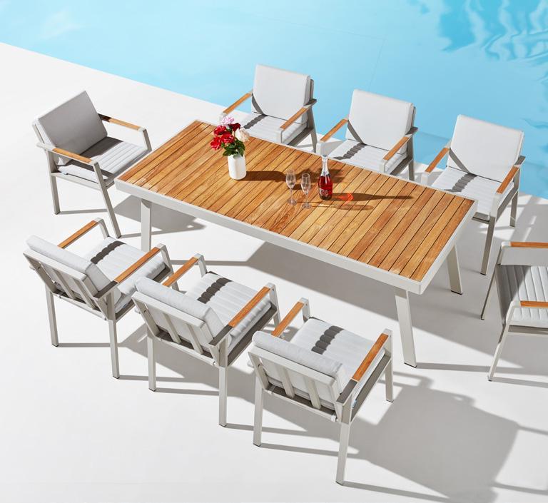 stol 103x217cm, 6x stolica s jastucima, aluminij/tikovina/uže