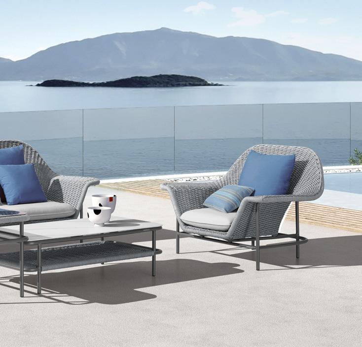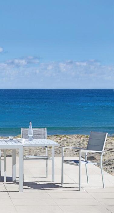 Doživite savršenu harmoniju prirodnih elemenata i modernih aluminijskih linija. Kombinacija prirodnog užeta i modernog dizajna stvara jedinstveni osjećaj koji vas prenosi na odmor uz more. Opustite se i uživajte u teksturama koje donosi ROMEO.