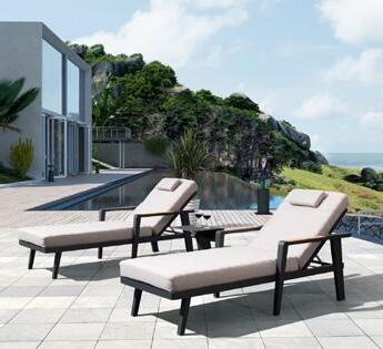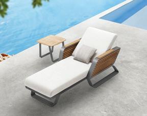 Set PALLISAD, ležaljka + stolić, ležaljka s jastukom 80x215cm i stolić 47x47cm, aluminij/tikovina