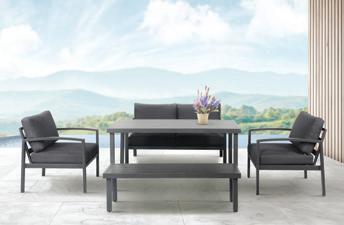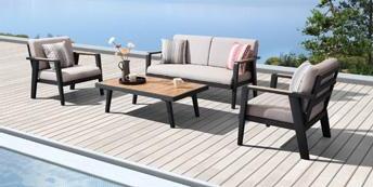 2-sjed s jastucima 154x81cm, 2x fotelja s jastucima 80x81cm, stolić 82x130cm, eukaliptus siva