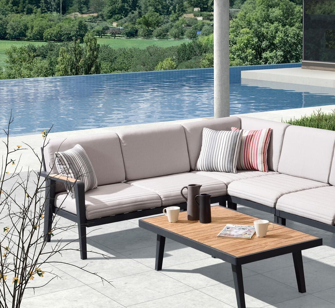 Kutna garnitura PALLISAD 319x254cm, s jastucima, stolić 70x120cm, aluminij/tikovina. Set ne uključuje bočni stolić.
