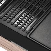 Nova dimenzija dizajna roštilja koji se savršeno uklapa u vaš vanjski kutak. Prekrivena upravljačka ploča čini da roštilj izgleda besprijekorno kada se ne koristi. Kada uživate u pečenju, poklopac se pretvara u praktičnu policu. Prostrane bočne police izrađene su od nehrđajućeg čelika i omogućuju jednostavnu pripremu hrane, dok donji ormarići nude obilje prostora za odlaganje.