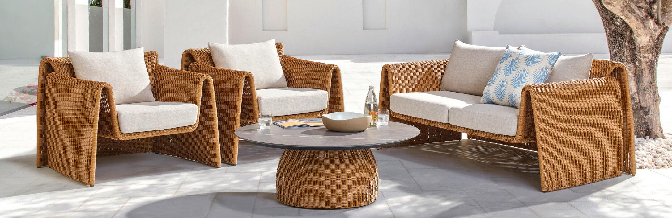 Fotelj MELANIA, 96x99cm, z blazinami, um. ratan/tkanina Olefin