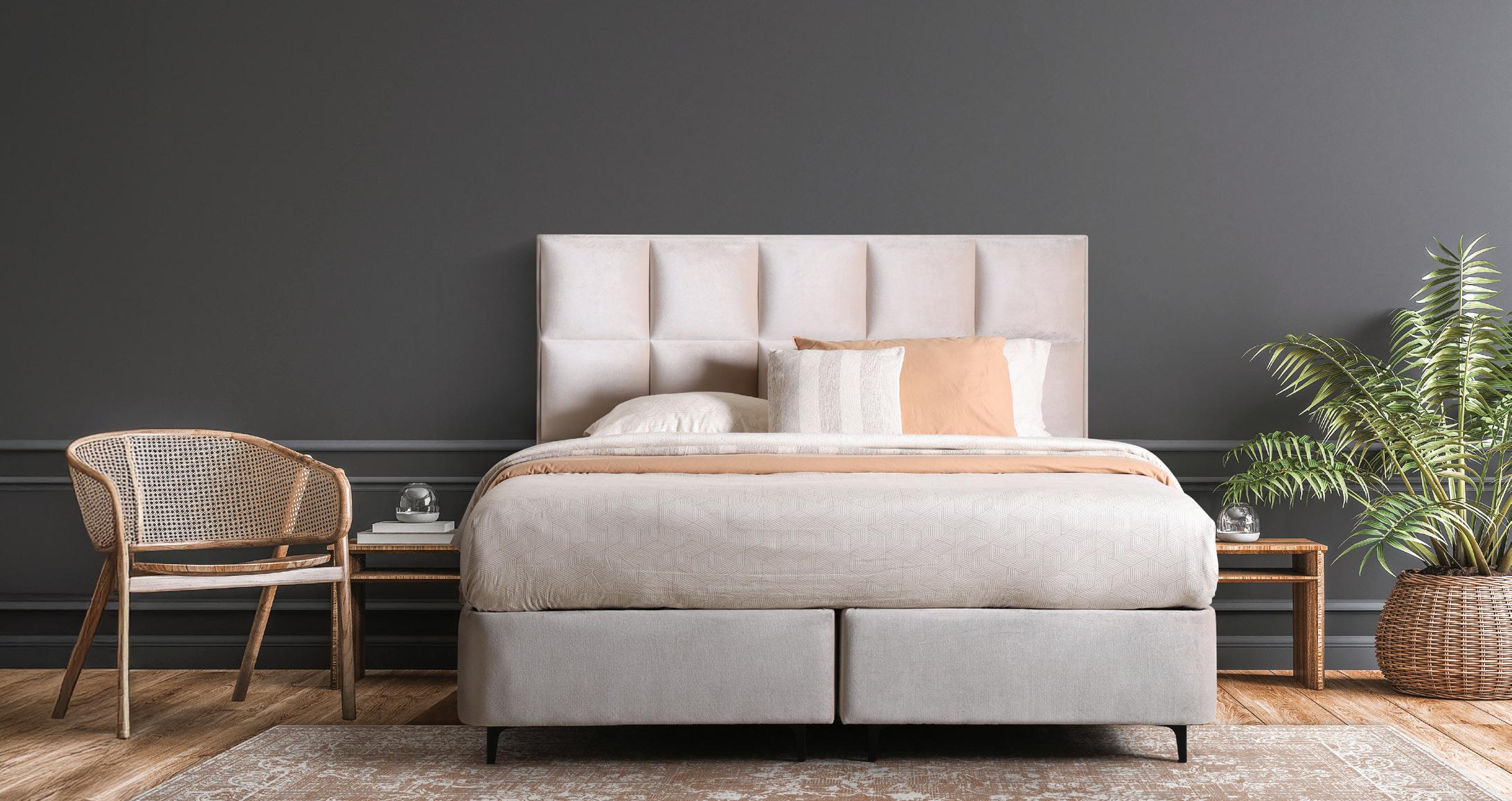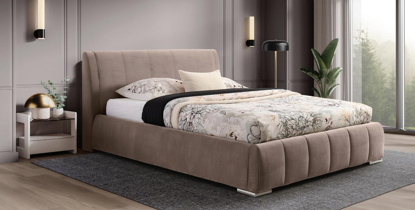 Posteljni okvir MELBOURNE, 160x200cm, vzglavje MELBOURNE, podnožje ELITE BOX, noge CARMEN/NINA, blago STANDARD različne barve. Ostala podnožja in