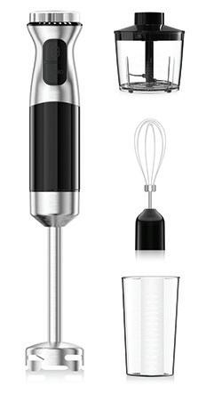 2 hitrosti + turbo funkcija, priloženi sekljalnik, metlica za stepanje, merilna posoda