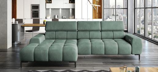 1.190 € 2.290 € Kutna garnitura KLOE III, 270x200cm, 1x električno pomično sjedište, 3x pomični nasloni za glavu, cijena vrijedi za materijal Castel 93 (siva) i 39 (tamno siva). Količine su ograničene.