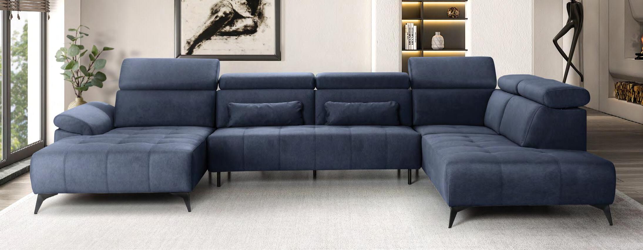 €2.690 Kotna sedežna garnitura TOGO S, vzmeteno, 308x183cm leva ali desna postavitev, električno pomično sedišče, 3x nastavljiv vzglavnik, material CASTEL različne barve