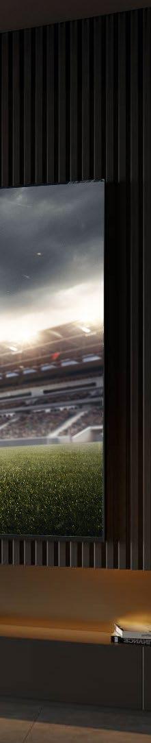 Doživite edinstven način prikazovanja umetniških del! TV z vrhunsko kakovostjo slike in umetniškim načinom bo vaš dnevni prostor spremenil v avtentično galerijo. Televizor Frame se odlično prilega prostoru, prilagodljiv okvir po meri pa je eleganten dodatek za vsak interier.