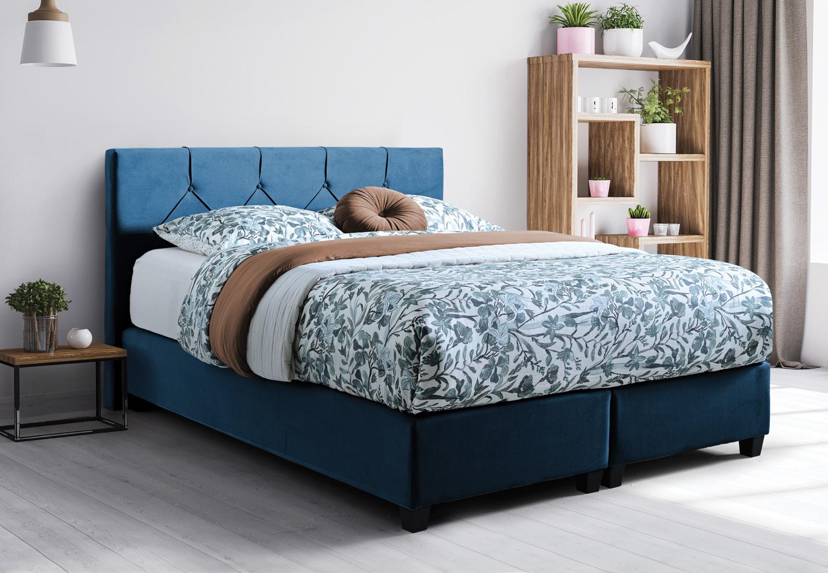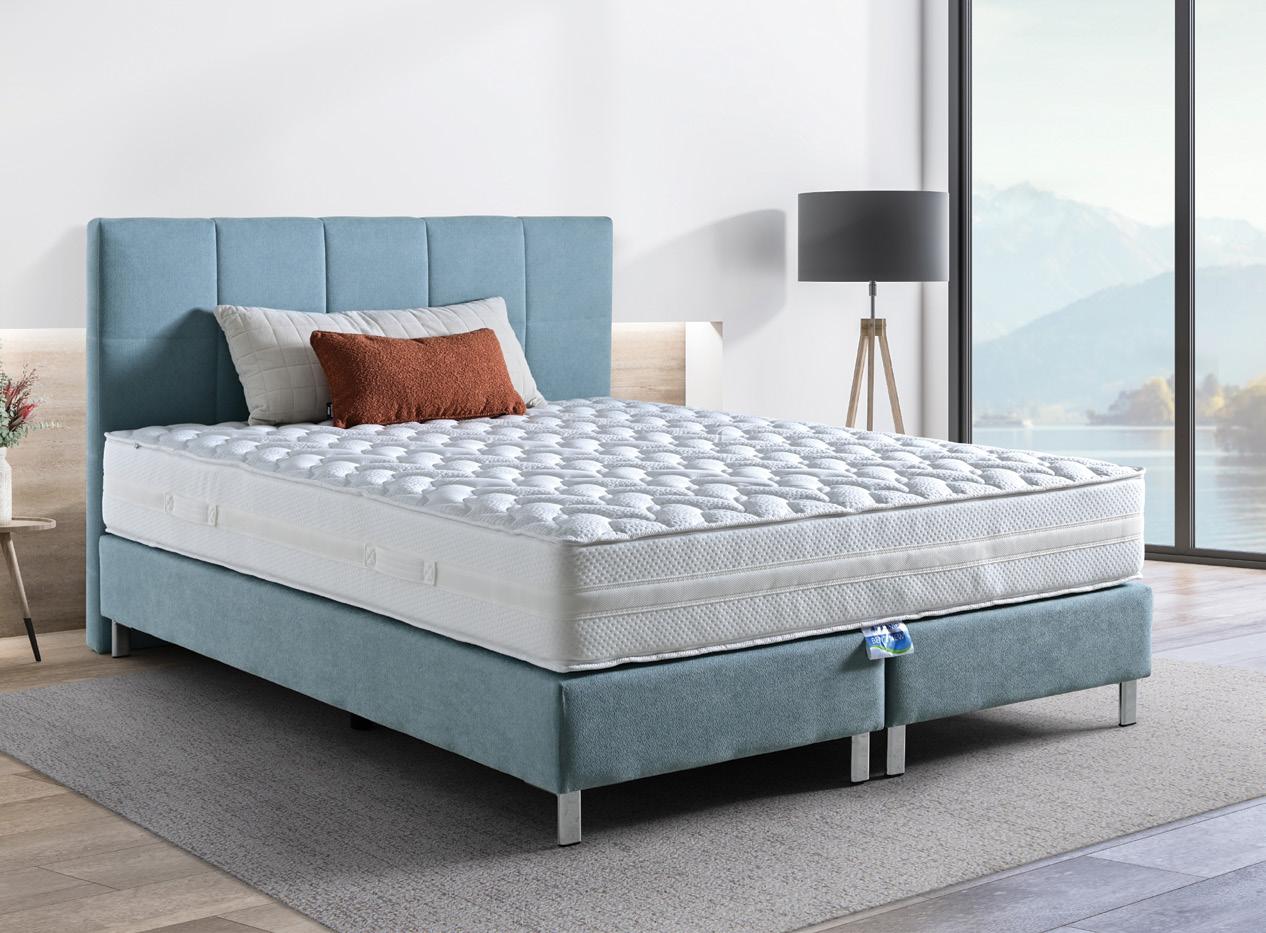Posteljni set ROMA/BONEL PLUS, 160x200cm celotna postelja z vzmetnico BONEL PLUS, klasično BONEL vzmetenje, BOX struktura, blago TITAN 111 modra €499