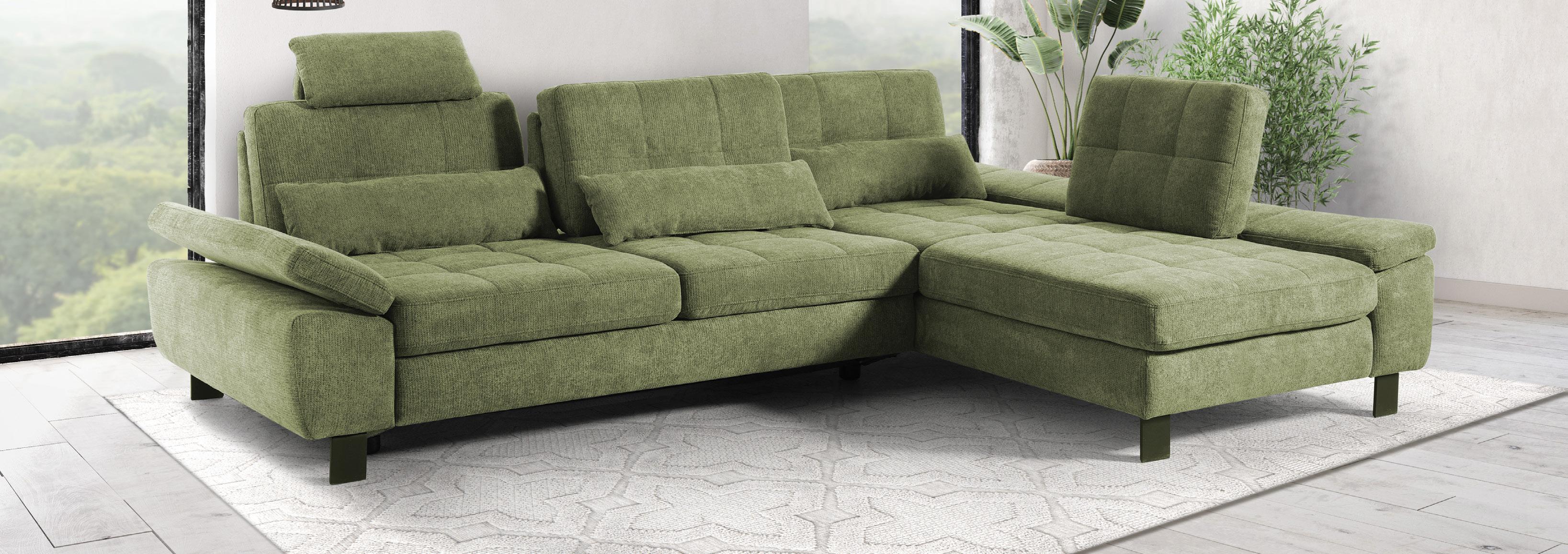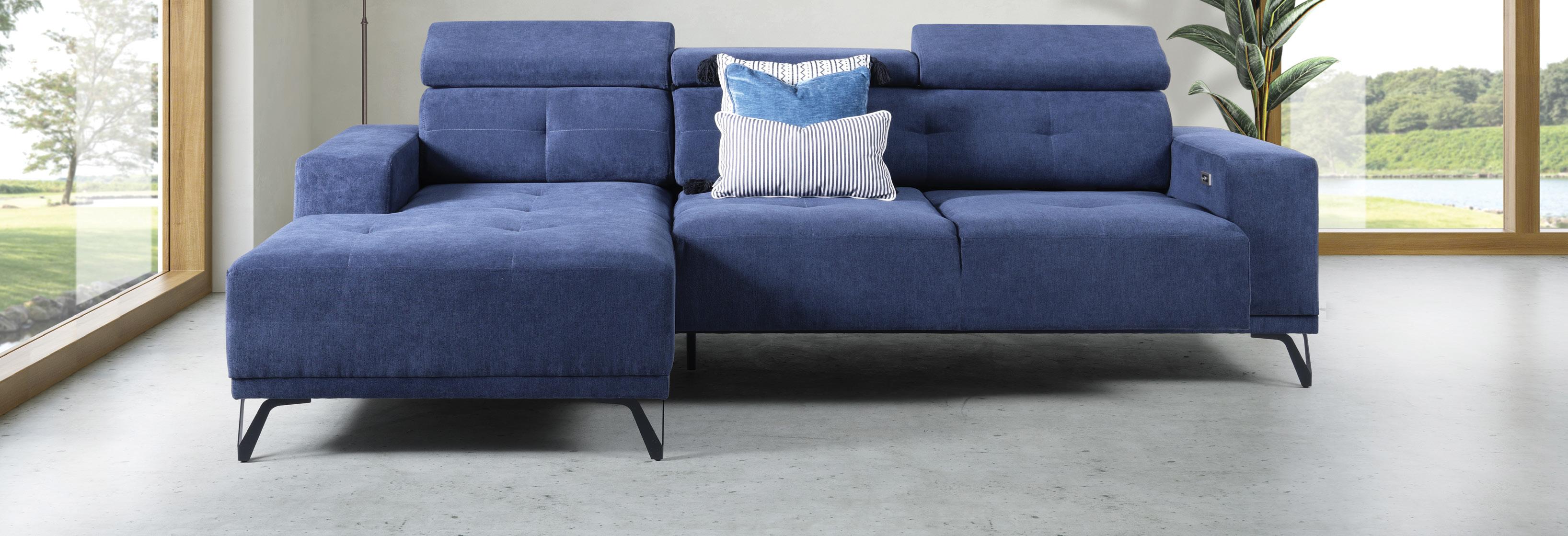 Kotna sedežna garnitura MONTELLO, vzmeteno, 211x310cm, leva ali desna postavitev, električno pomično sedišče, 1x pomično hrbtišče, 5x nastavljiv vzglavnik, material K.5 navy