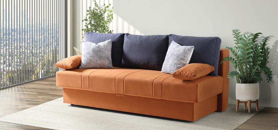 €490 €549 3-sed PARIZ LUX, 195x100cm, ležišče 150x195cm, predal, blago ORION oranžna in siva