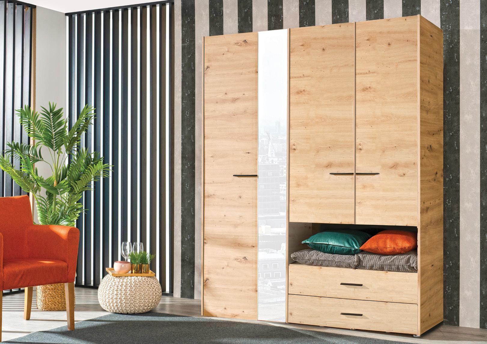 omara LEON 4D 161x205x54cm, Art.hrast ali bela/ogledalo.