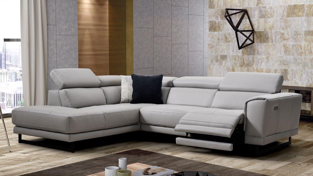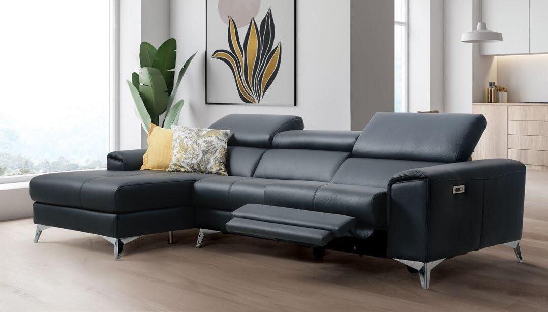 Usnjena kotna sedežna garnitura ORLANDO, 170x287cm, leva ali desna postavitev, električni počivalnik, 3x nastavljiv vzglavnik, usnje črna ali svetlo siva. Izdelano v Italiji!