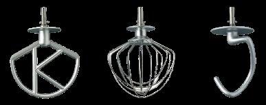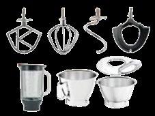 Moč 1200 W, vgrajena tehtnica, priloženi stekleni mešalnik, dodatna 3,5 l posoda, metlica, stepalnik, K-nastavek, kavelj za testo