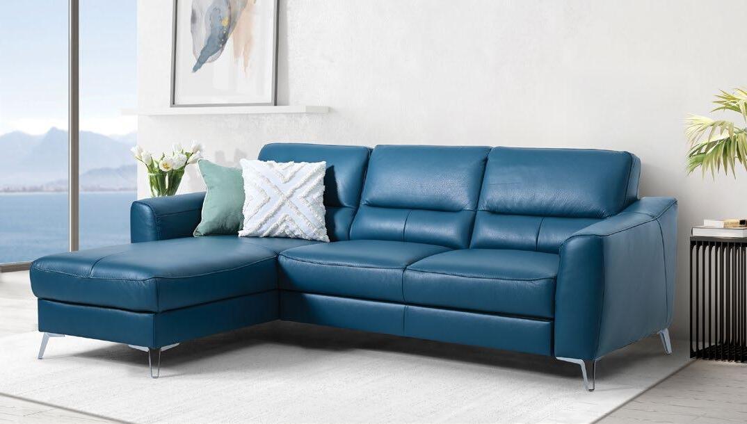 Usnjena kotna sedežna garnitura SERGIO 170x239cm,univerzalna postavitev, ležišče, predal, kovinske noge, usnje/um.usnje 519 temno siva. Turkizna barva usnja za doplačilo.