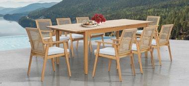 €1.833 Set WILEMA, 7 kosov, miza 100x220cm, 6x stol z blazinami, evkaliptus. Možnost nakupa tudi po elementih.