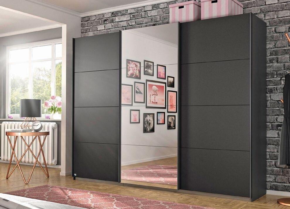 €799 €875 Omara RICA 203x210x62cm, notranji predal 6 polic, bela/ogledalo, sv.siva/ogledalo ali metalik siva/ogledalo