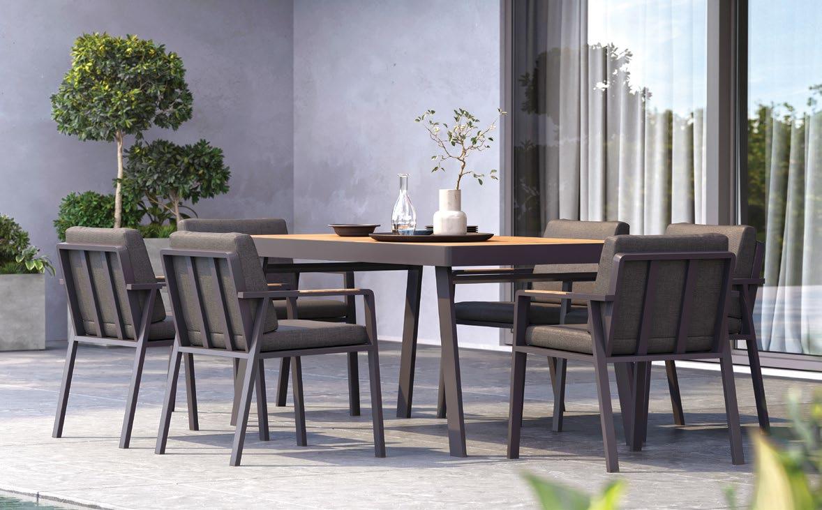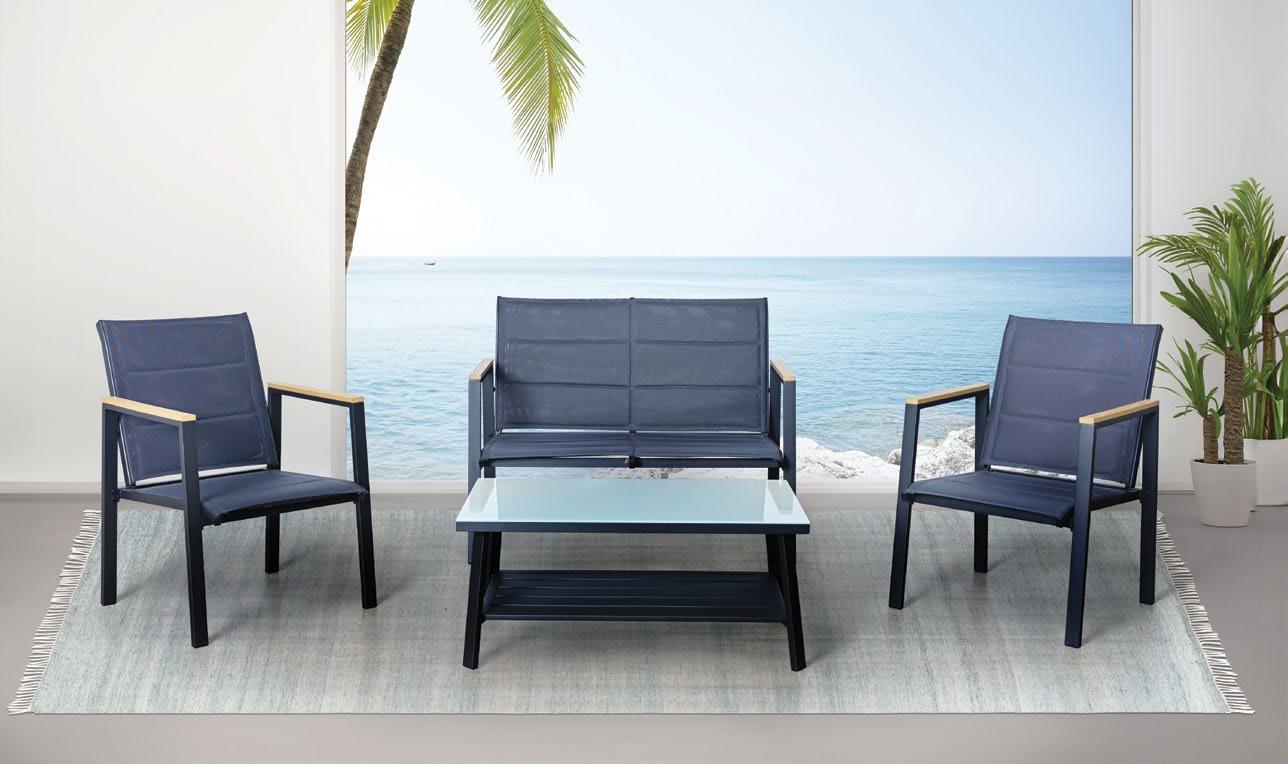 €3.690 Set LIGO, 4 kosi, 3-sed z blazinami 212x77cm, 2x fotelj z blazinami 76x77cm, mizica 70x120cm, aluminij, črna/črne blazine ali črna/zelene blazine €2.990 Set CASTEN, 4 kosi, 3-sed z blazinami 2x nastavljivo