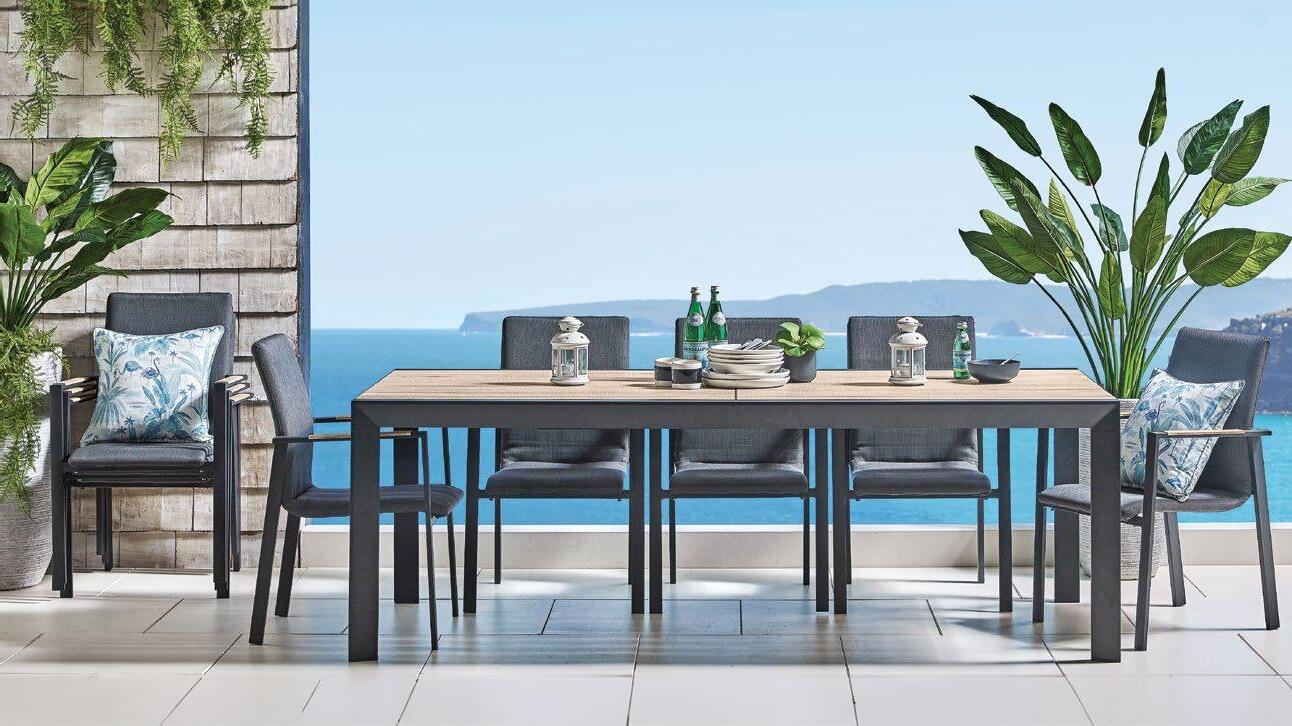 €3.722 Set CASPAR, 11 kosov, raztegljiva miza 100x250/314cm, aluminij/polywood, 10x nakladljiv stol, aluminij/tekstilen