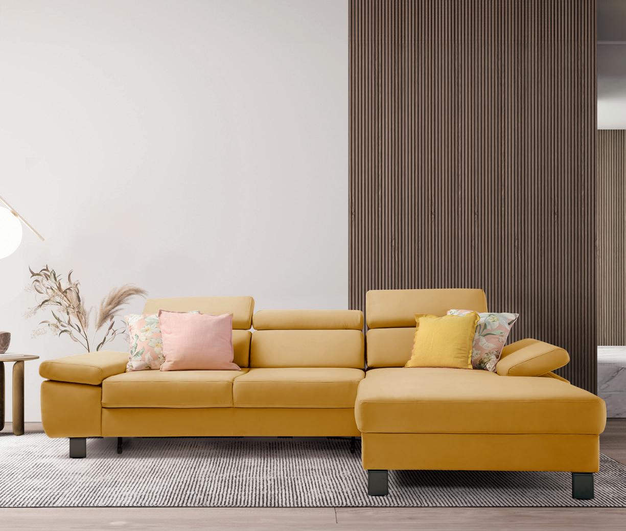 €1.990 Kotna sedežna garnitura VARESE, vzmeteno 291x210cm, leva ali desna postavitev, ležišče, 3x nastavljiv vzglavnik, 3x pomično hrbtišče, 2x nastavljiv rokonaslon, material FANCY barve iz zaloge