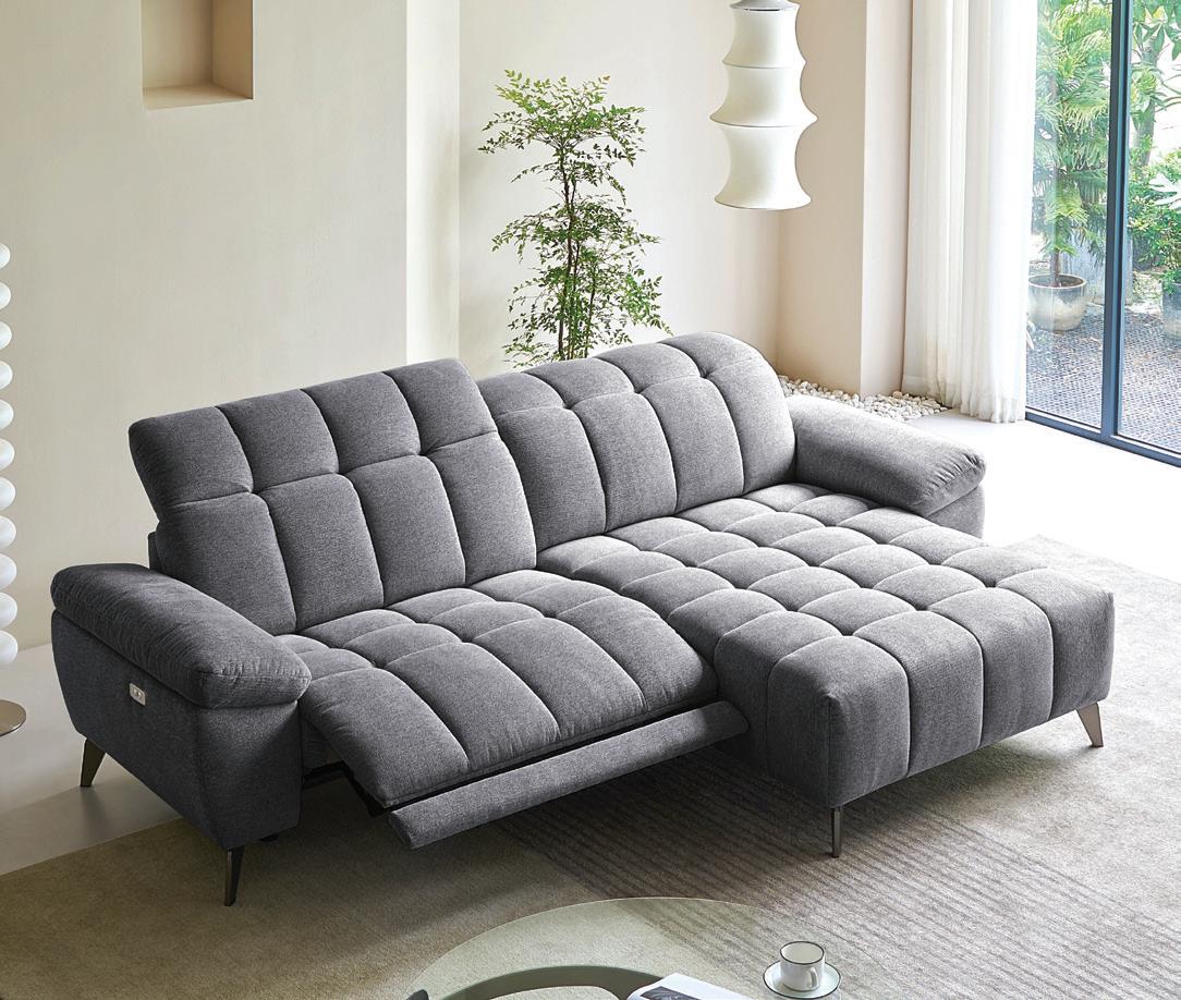 €2.390 Kotna sedežna garnitura TONINO, 220x282cm, leva ali desna postavitev, 1x električni počivalnik, 5x nastavljiv vzglavnik, nastavljiv rokonaslon, predal, blago siva