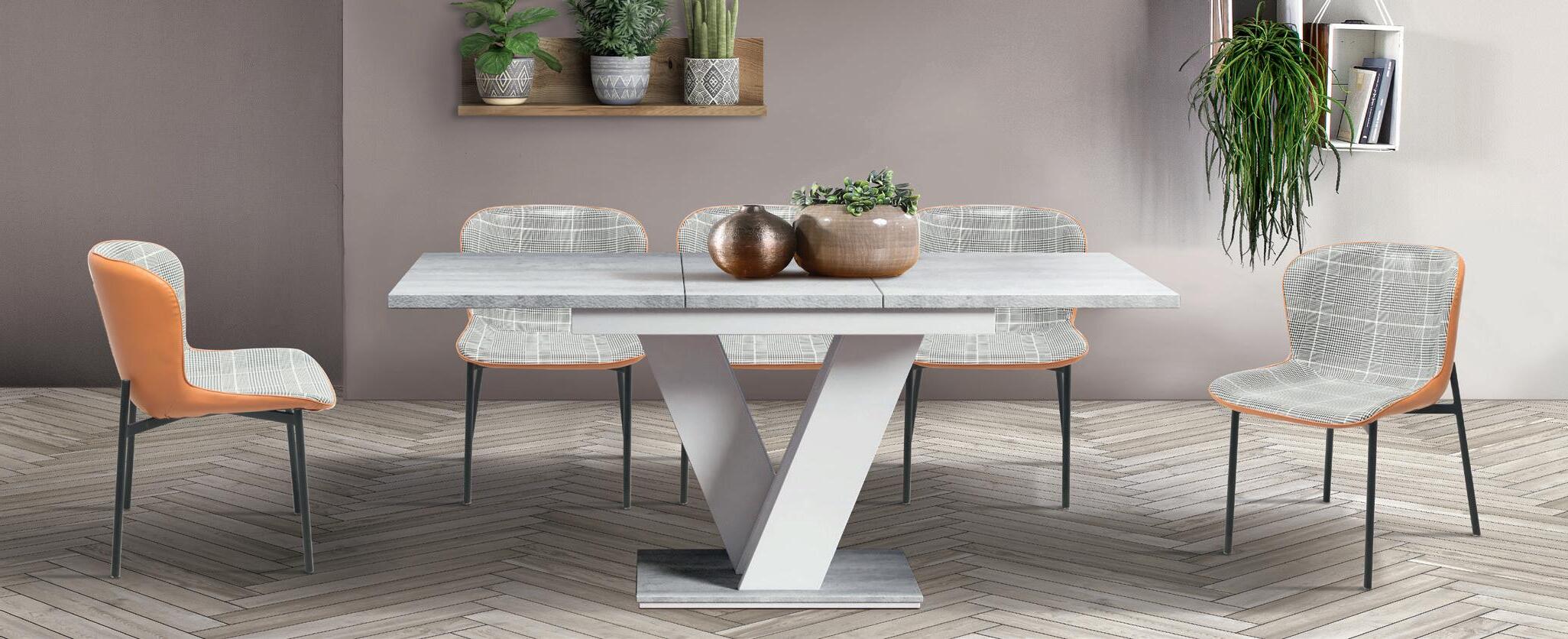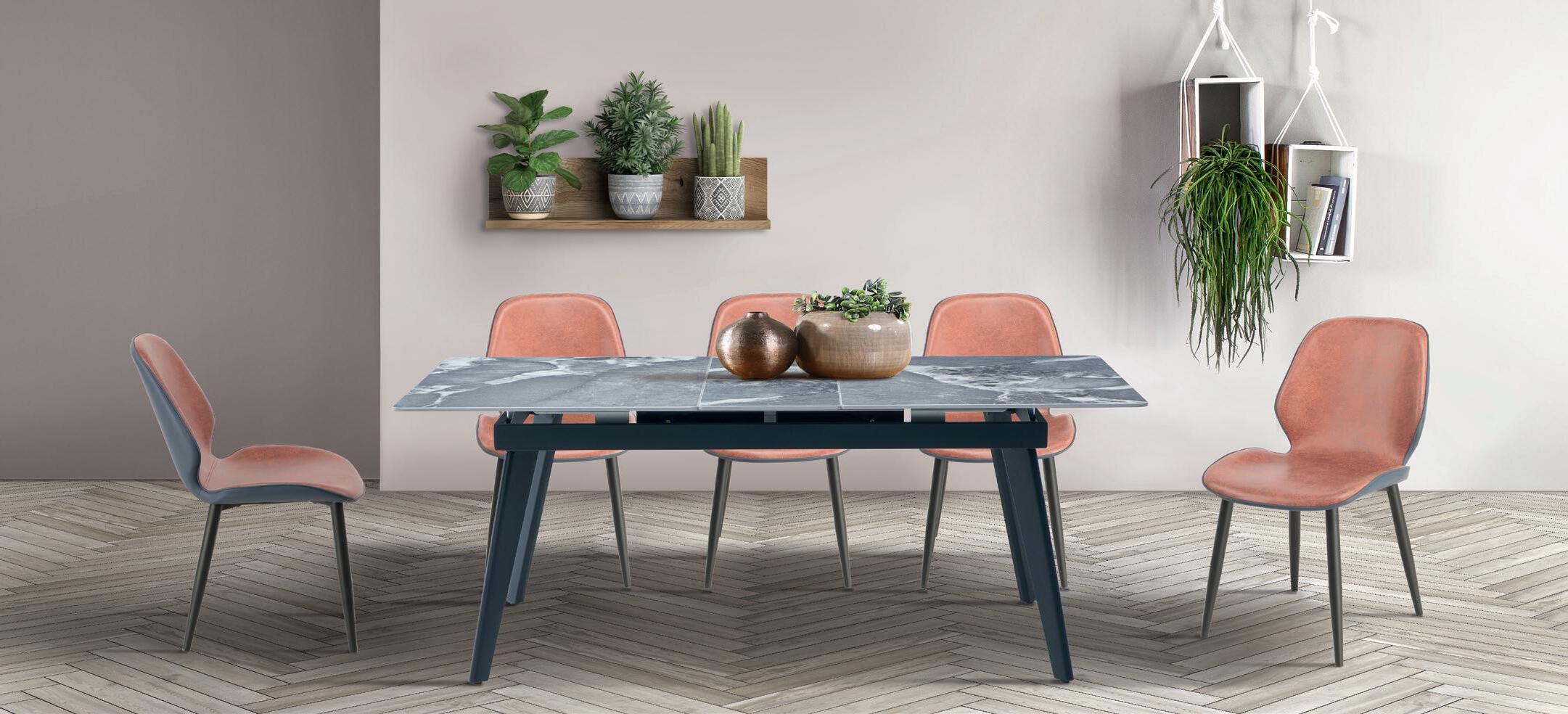 Raztegljiva miza QUARZ, 80x130/160cm ali 80x160/200cm, 12mm keramika siva z vzorcem marmorja
