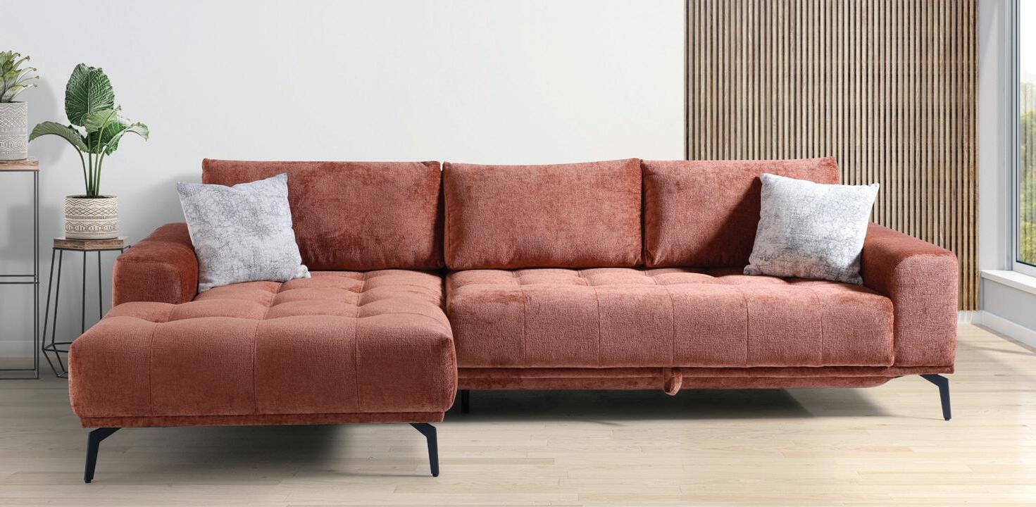 Kotna sedežna DALLAS, vzmeteno, 170x280cm, leva ali desna postavitev, ležišče 135x220cm, blago PERFECT HARMONY oranžna ali temno siva