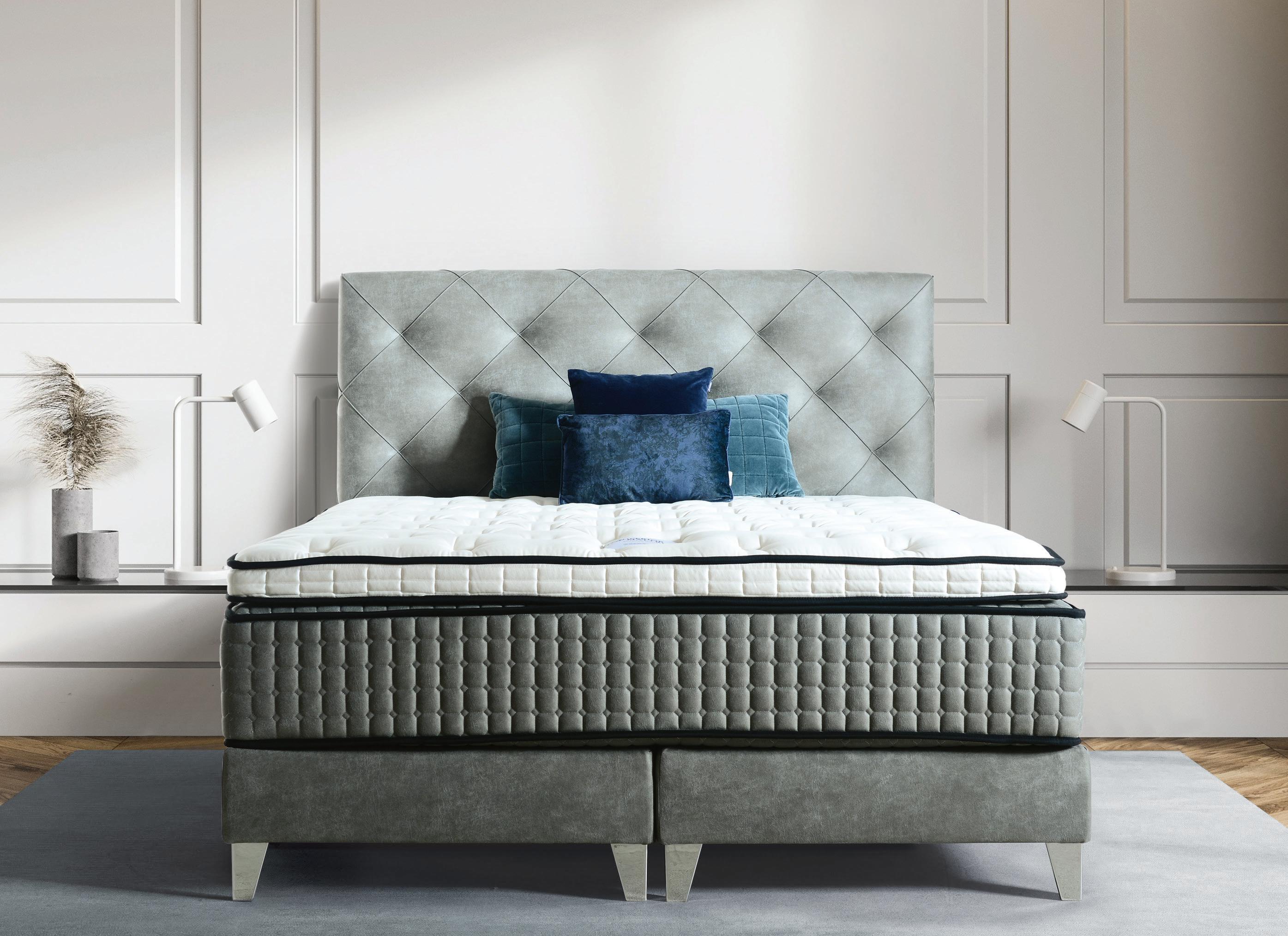 €1.990 Kotna sedežna garnitura MONTELLO, vzmeteno, 310x211cm, leva ali desna postavitev, električno pomično sedišče, 1x pomično hrbtišče, 5x nastavljiv vzglavnik, material K.5 siva. Navy barva za doplačilo.