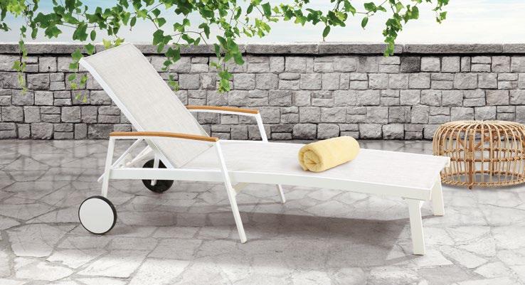 €219 Ležalnik HOMESTEAD BRN večstopenjsko nastavljiv, s koleščki, akacija. Blazina za doplačilo.