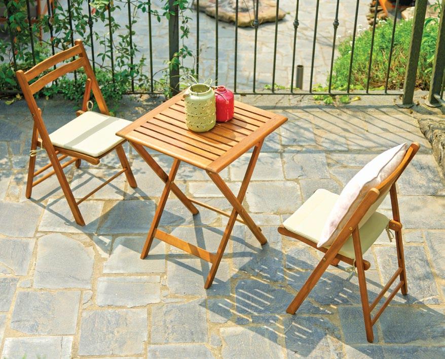 €990 Set BLOOMSBURY, 13 kosov, raztegljiva miza 100x160/220cm, 6x zložljiv in nastavljiv stol BLOOMSBURY, 5-stopenjsko nastavljiv in zložljiv stol z blazino, akacija