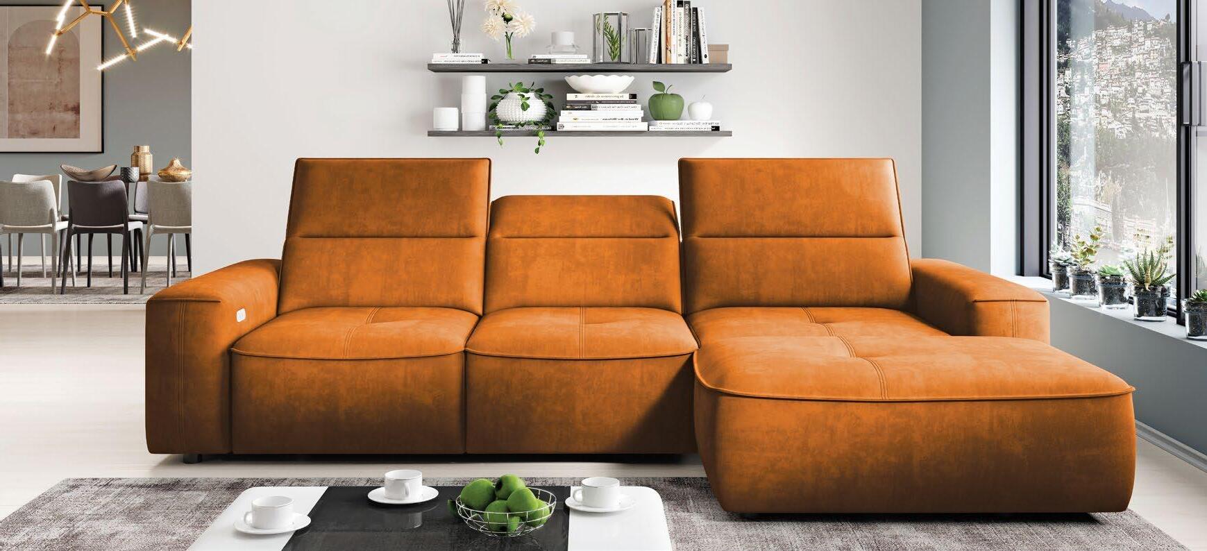 Kotna sedežna garnitura CARMELO S, vzmeteno, 275x182cm, leva ali desna postavitev, predal, električno pomično sedišče, 3x nastavljiv vzglavnik, material kategorija 1 SALVADOR opečnata ali antracit. Ostale barve in postavitve po naročilu za doplačilo.