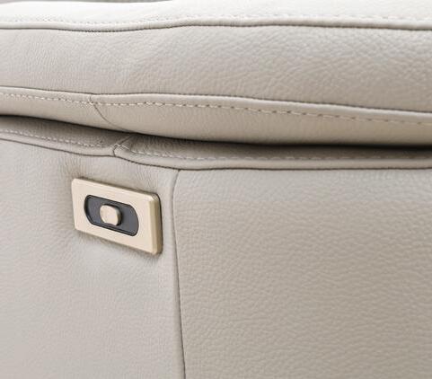 Usnjena kotna sedežna garnitura BAGGIO, 196x280cm, leva ali desna postavitev, električno pomično sedišče, 1x pomično hrbtišče, 5x nastavljiv vzglavnik, predal, brezžični polnilnik telefona, usnje U24 siva ali U26 antracit. Ostale barve za doplačilo.