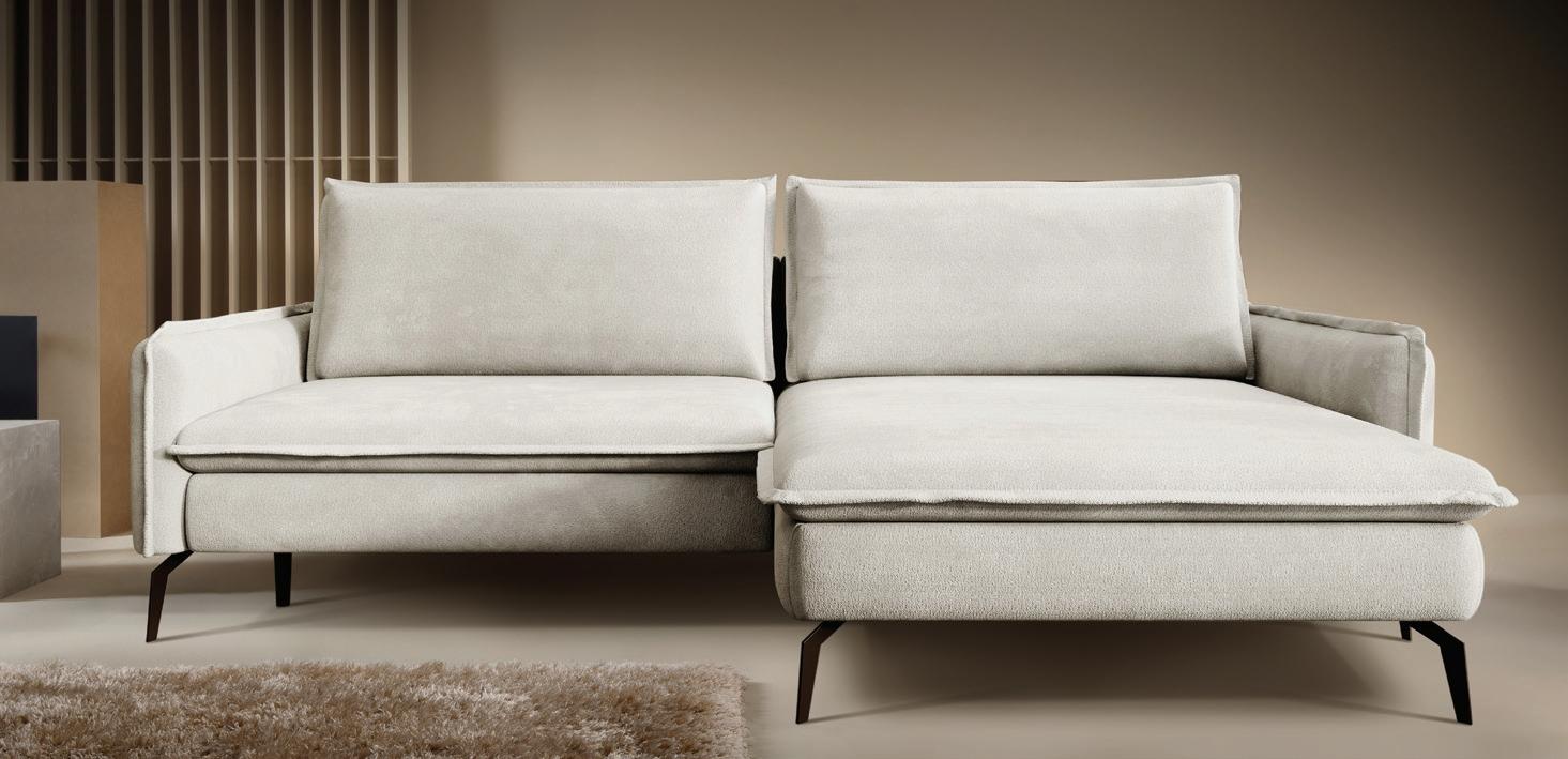 Usnjena kotna sedežna garnitura SIROLO, vzmeteno, 285x230cm, leva ali desna postavitev, 5x nastavljiv vzglavnik, usnje 10625 perla ali 9031 zelena. Na voljo z električnim počivalnikom doplačilo.