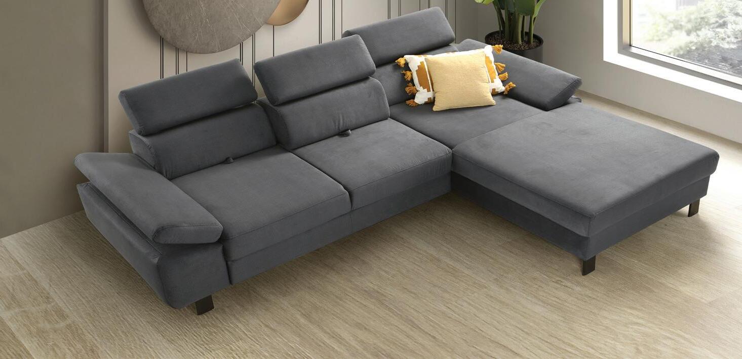 €1.990 Kotna sedežna garnitura KOLTON, vzmeteno 265x178cm, leva ali desna postavitev, električno pomično sedišče, 3x nastavljiv vzglavnik, blago ASTON antracit, siva, zelena ali modra. Dobava takoj velja za sivo in zeleno barvo.