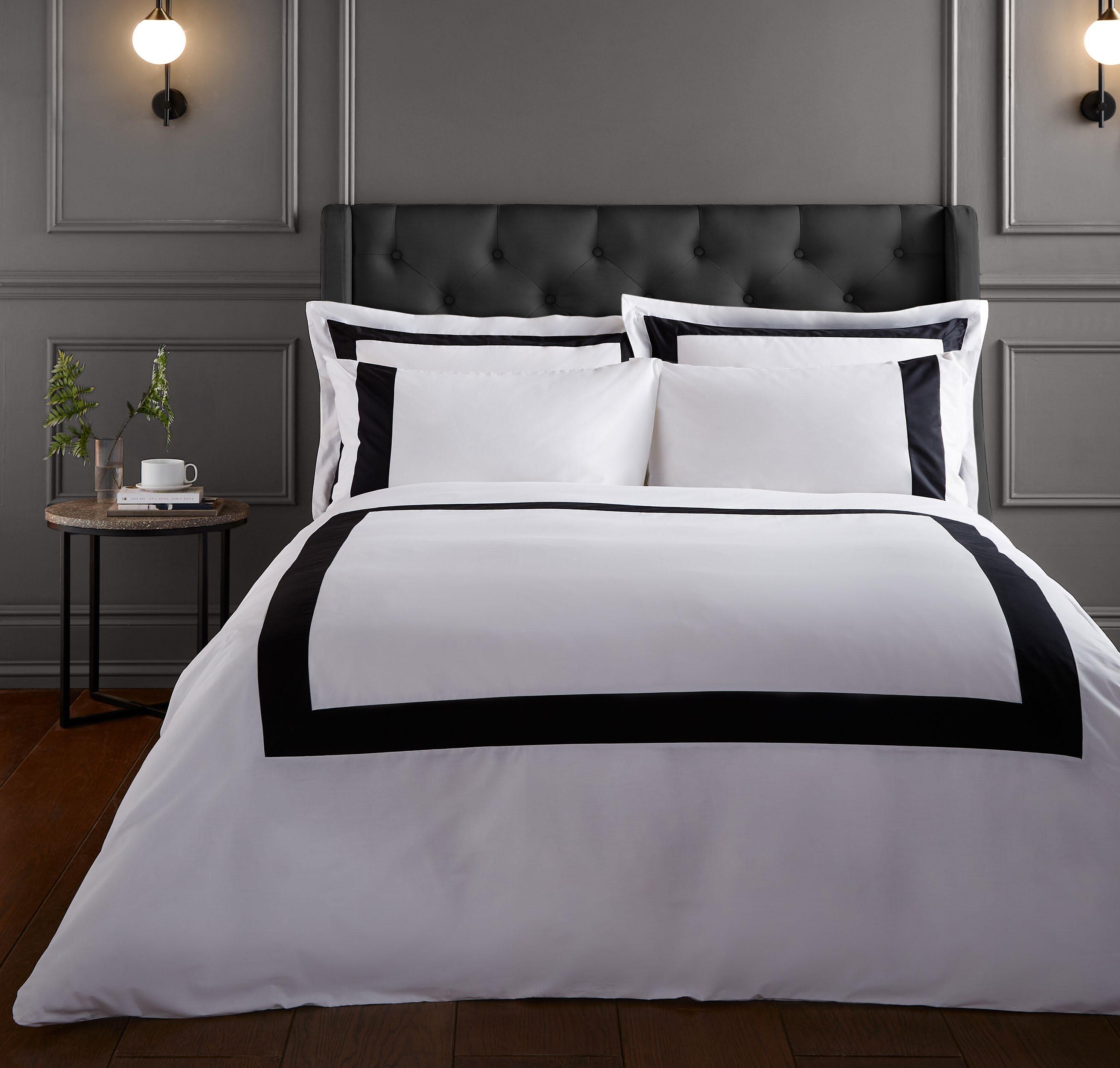 Uporabite belo posteljnino s črnimi ali sivimi detajli, kot so vzorci ali črte.