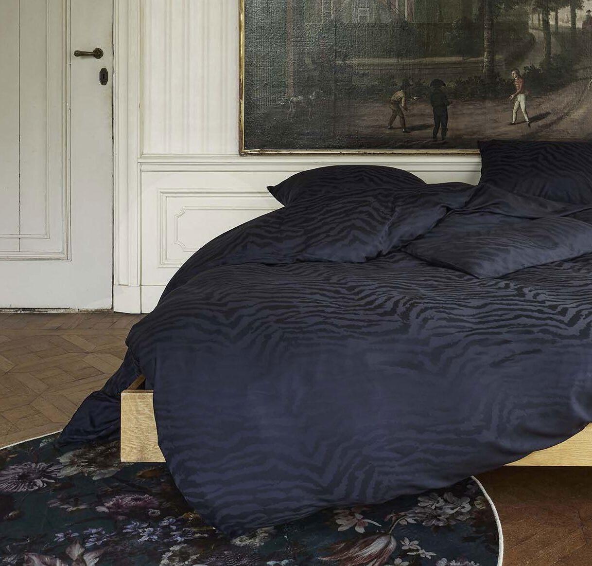 Temna posteljnina v barvah, kot so temno siva, temno rjava ali olivno zelena, pa lahko ustvari dramatičen in hkrati luksuzen videz prostora.