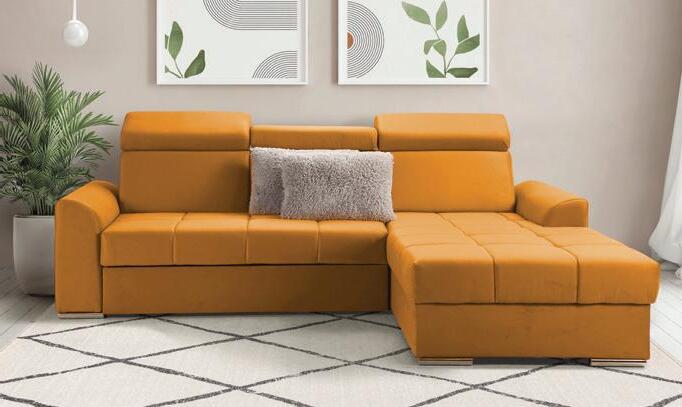 1.690 Kotna sedežna garnitura MAGNUS, vzmeteno, 288x186cm, leva ali desna postavitev, ležišče 132x215cm, predal, mat. kat.