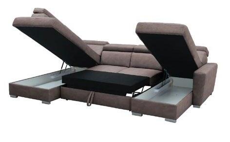 €2.480 Kotna sedežna garnitura CADIZ, 276x259cm, boxspring in bonel vzmetenje, 3x nastavljiva globina hrbtišča, material kategorija dva. Ostale kategorije materiala, nastavljivi vzglavniki, nastavljiv rokonaslon, funkcija v kotnem elementu ter ostale funkcije za doplačilo.