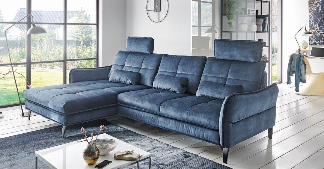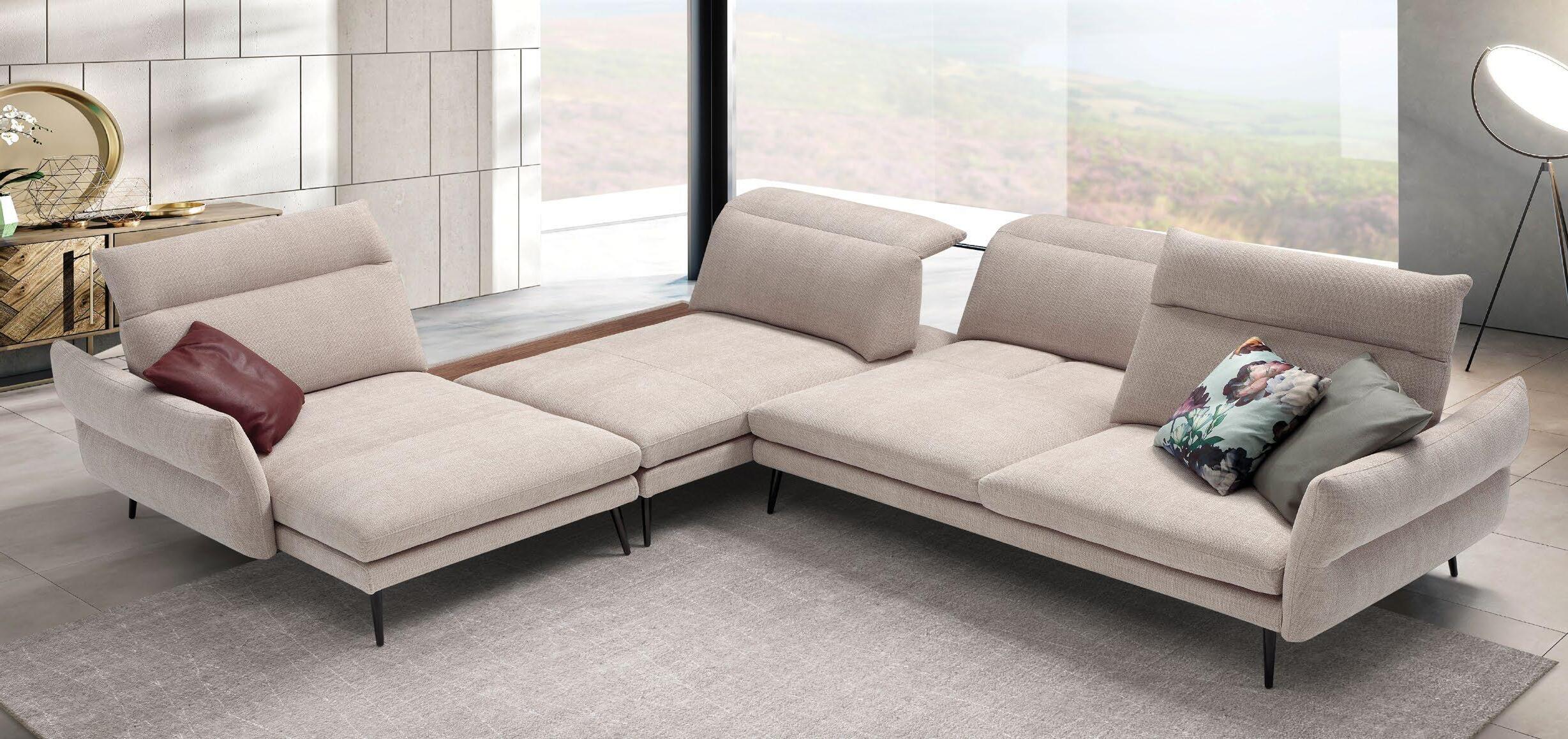€2.350 Kotna sedežna FLOYD S, vzmeteno 277x177cm, nastavljivi vzglavniki, električno pomično sedišče, material kategorija 1 PALLADIUM različne barve