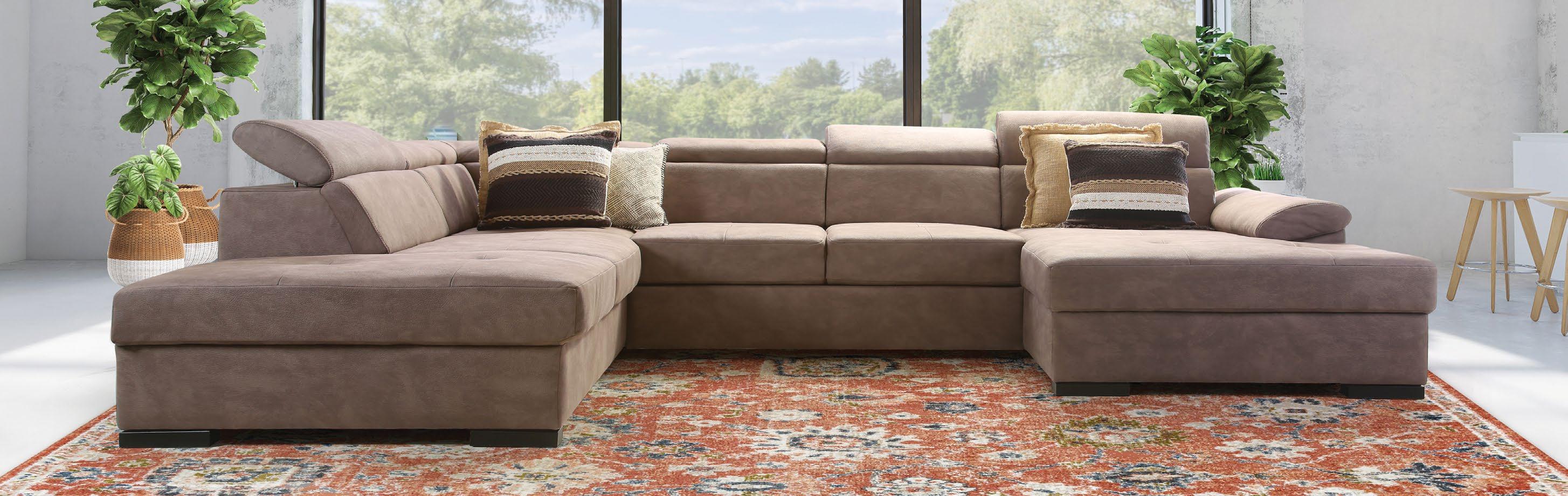 Kotna sedežna WISH, vzmeteno, 236x331x170cm, leva ali desna postavitev, ležišče, 4x nastavljiv vzglavnik, blago TEXAS 95 taupe
