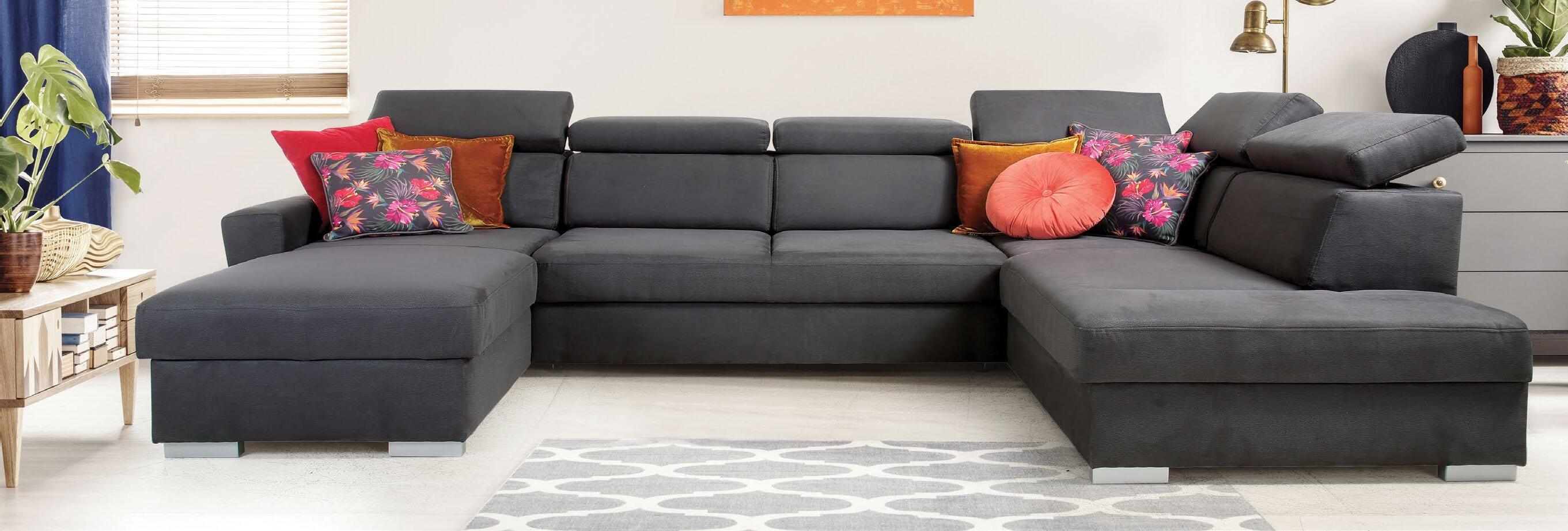 Kotna sedežna garnitura MODULA 274x360cm, leva ali desna postavitev, pomična hrbtišča, nastavljivi vzglavniki, nastavljiva rokonaslona, material kat. 70. Ostale kategorije materiala ali usnja ter ostale funkcije in postavitve za doplačilo.
