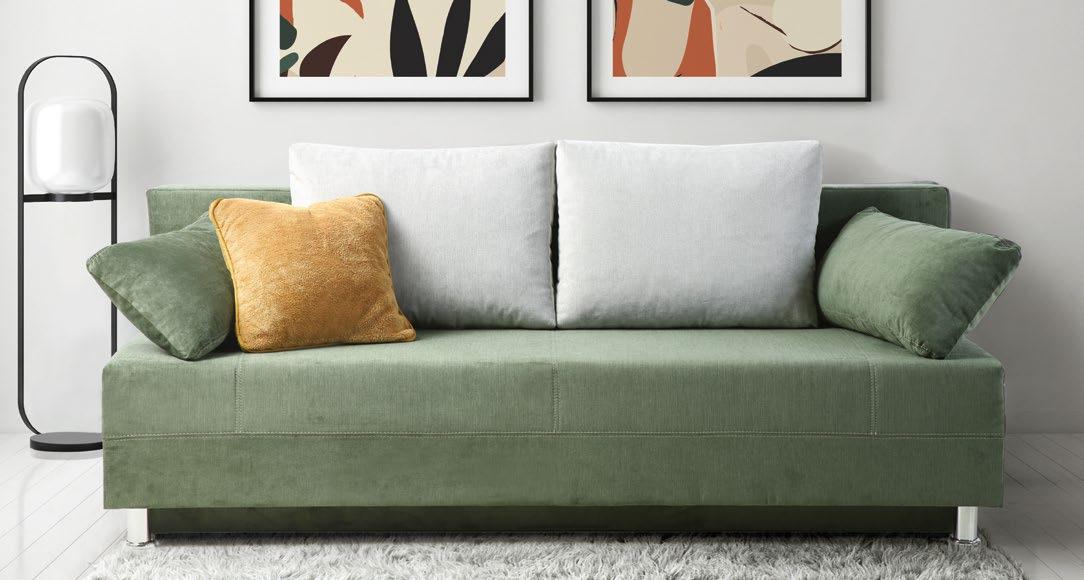 €499 €659 3-sed AMOS, 195x87cm, ležišče 136x195cm, predal, blago NEVE tem.siva/sv.siva ali NEVE zelena/tem.siva