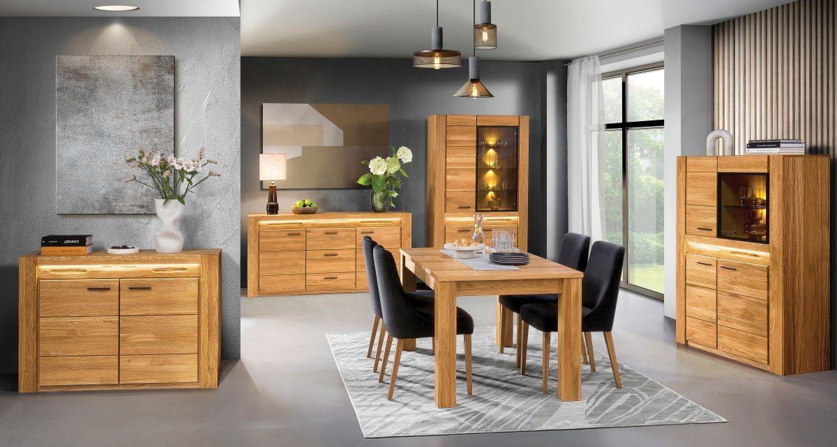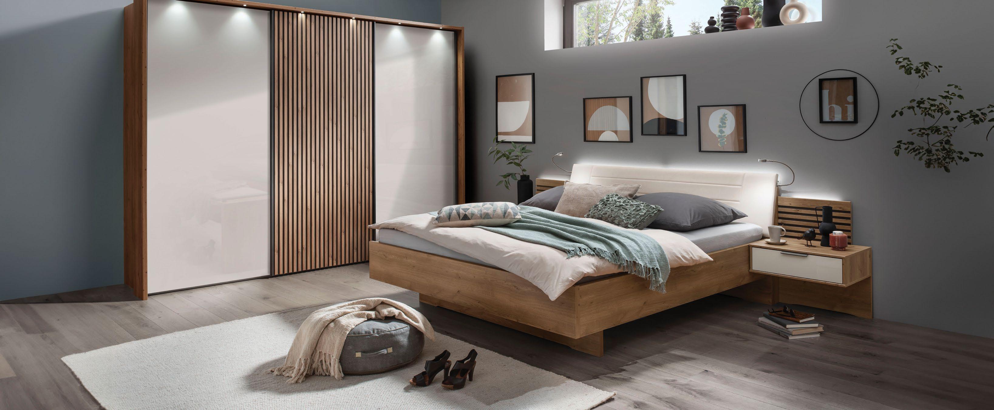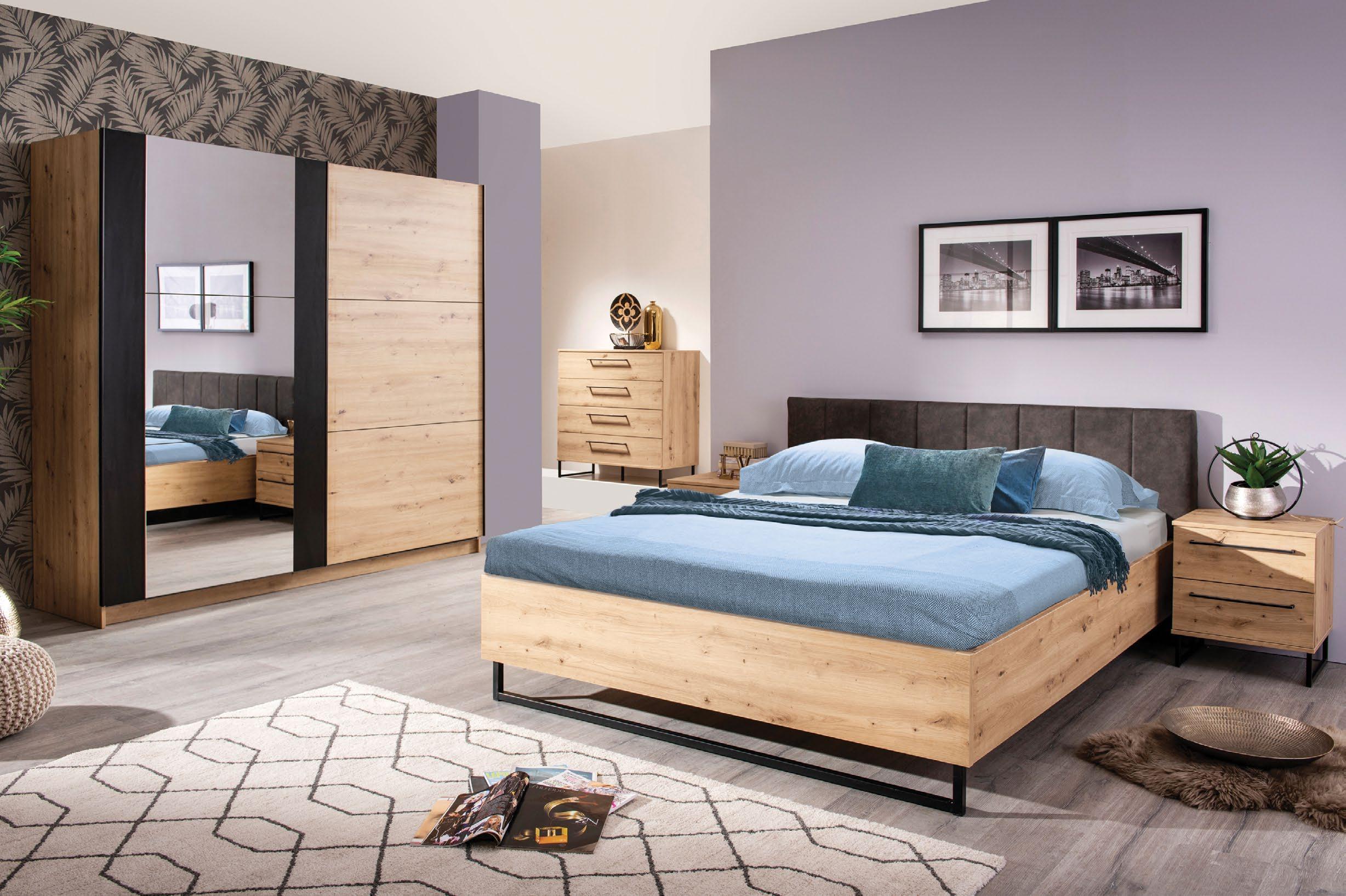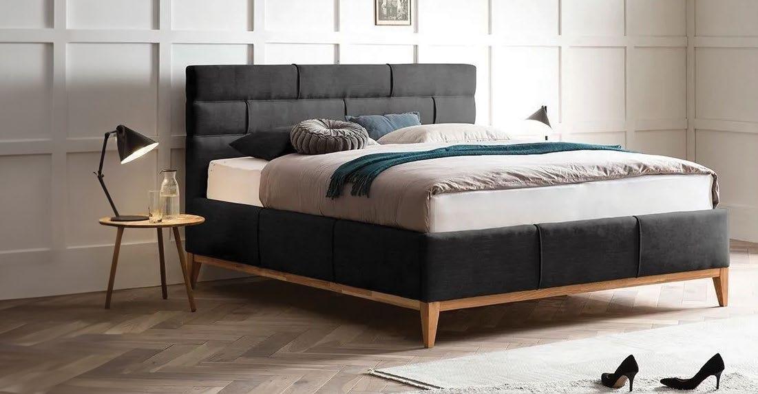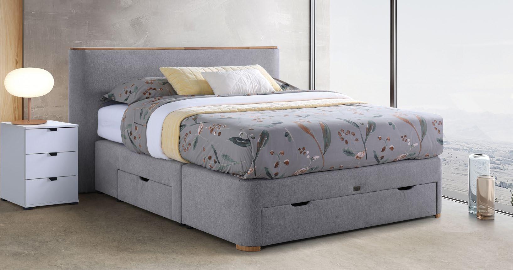 €1.429 Posteljni okvir MEDEJA, 160x200cm box podnožje, 3x predal, leseni detajli masiven les hrast, blago CAPULET 4003 siva
