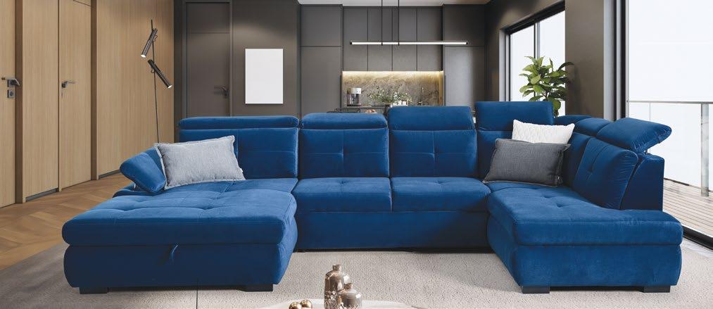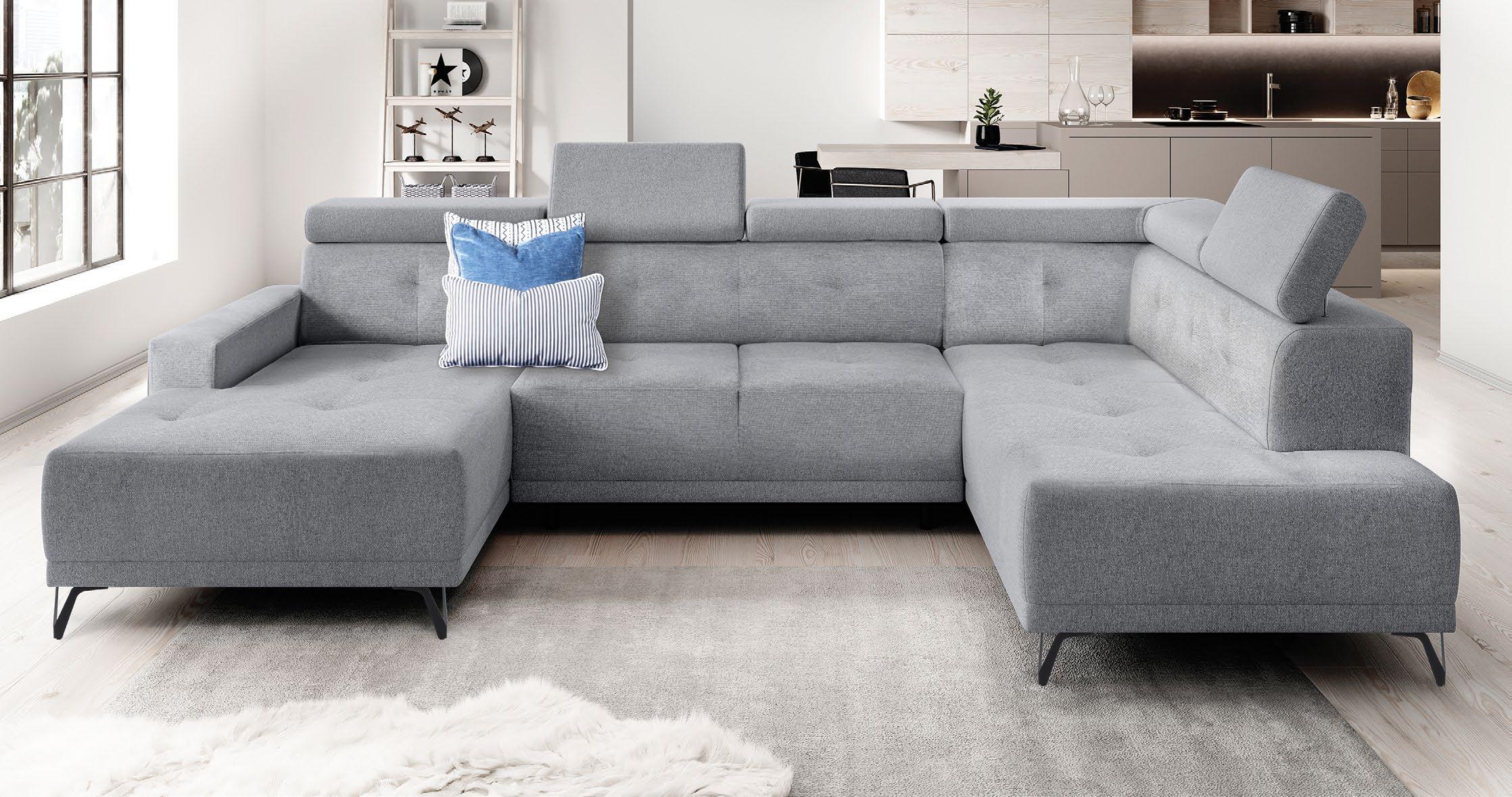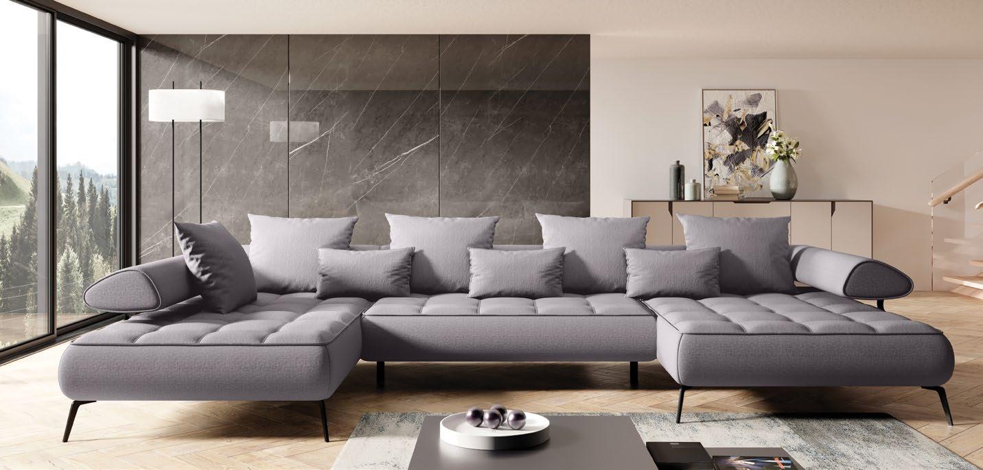 €3.189 Kotna sedežna garnitura PATTON L, vzmeteno, 300x216cm, leva ali desna postavitev, električno pomično sedišče, 1x pomično hrbtišče, 5x nastavljiv vzglavnik, material APHRODITE različne barve
