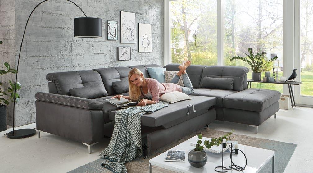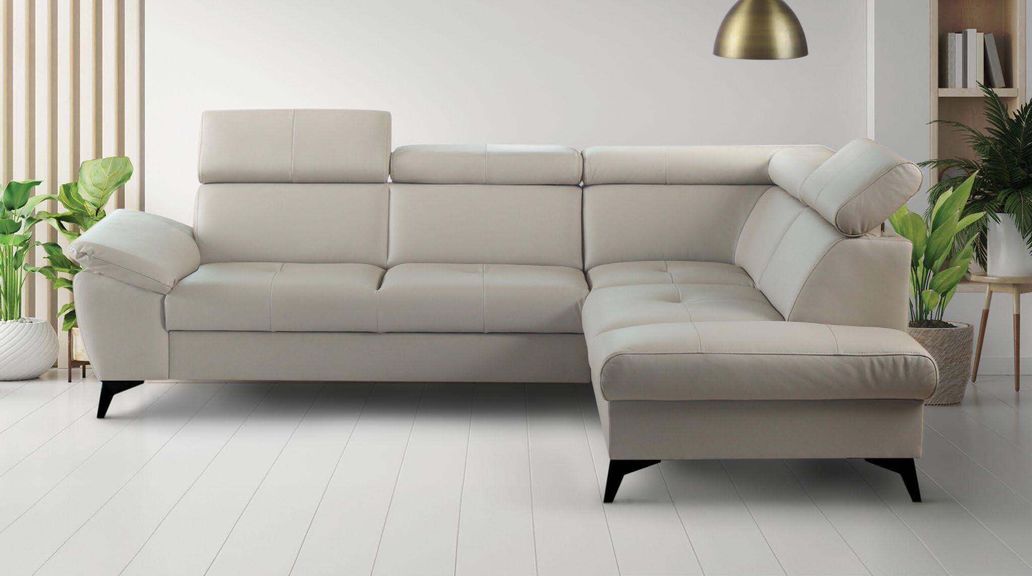 €1.990 Usnjena kotna sedežna BERNIE, 176x226cm, leva ali desna postavitev, ležišče, predal, usnje/um.usnje 516 taupe ali 518 siva.