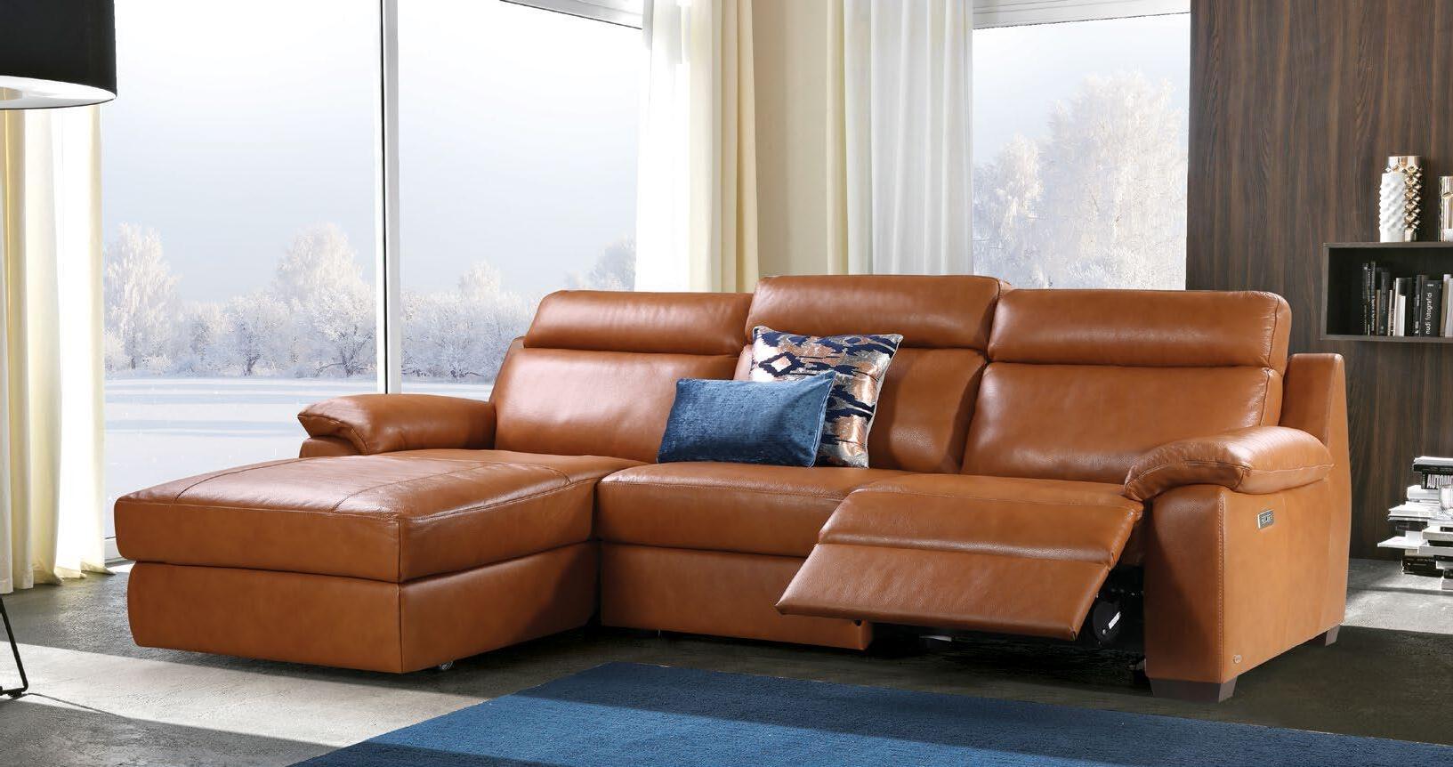 €3.190 Usnjena kotna sedežna garnitura MILLES 2, 155/174cmx266, leva ali desna postavitev, 1x električni počivalnik, električno pomični počivalnik, 2x električno pomični vzglavnik, usnje/um.usnje barva konjak ali antracit €2.790
