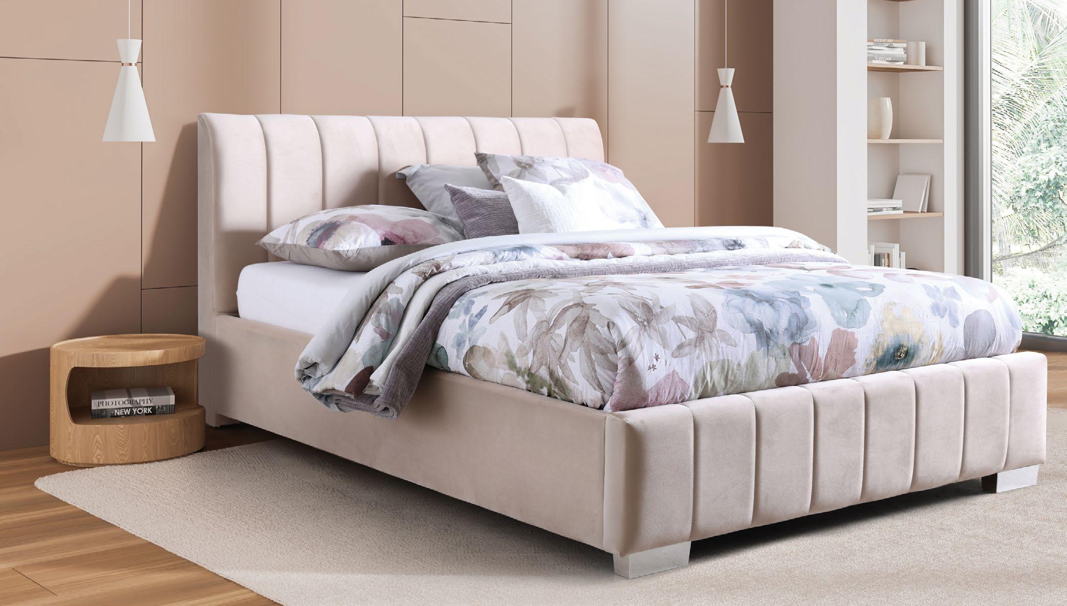 €549 Posteljni okvir CARDIF, 160x200cm material MANTTA 9611 bež. Dvižno dno za doplačilo.