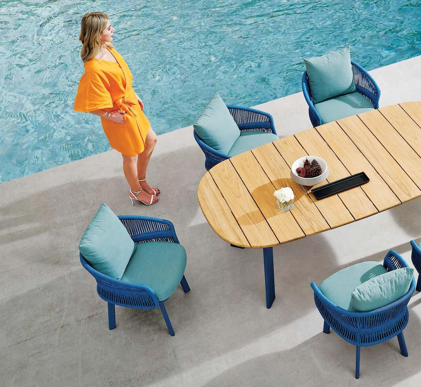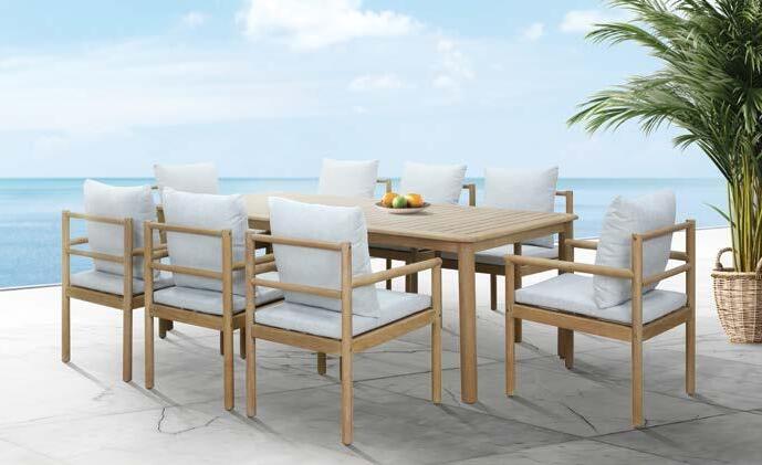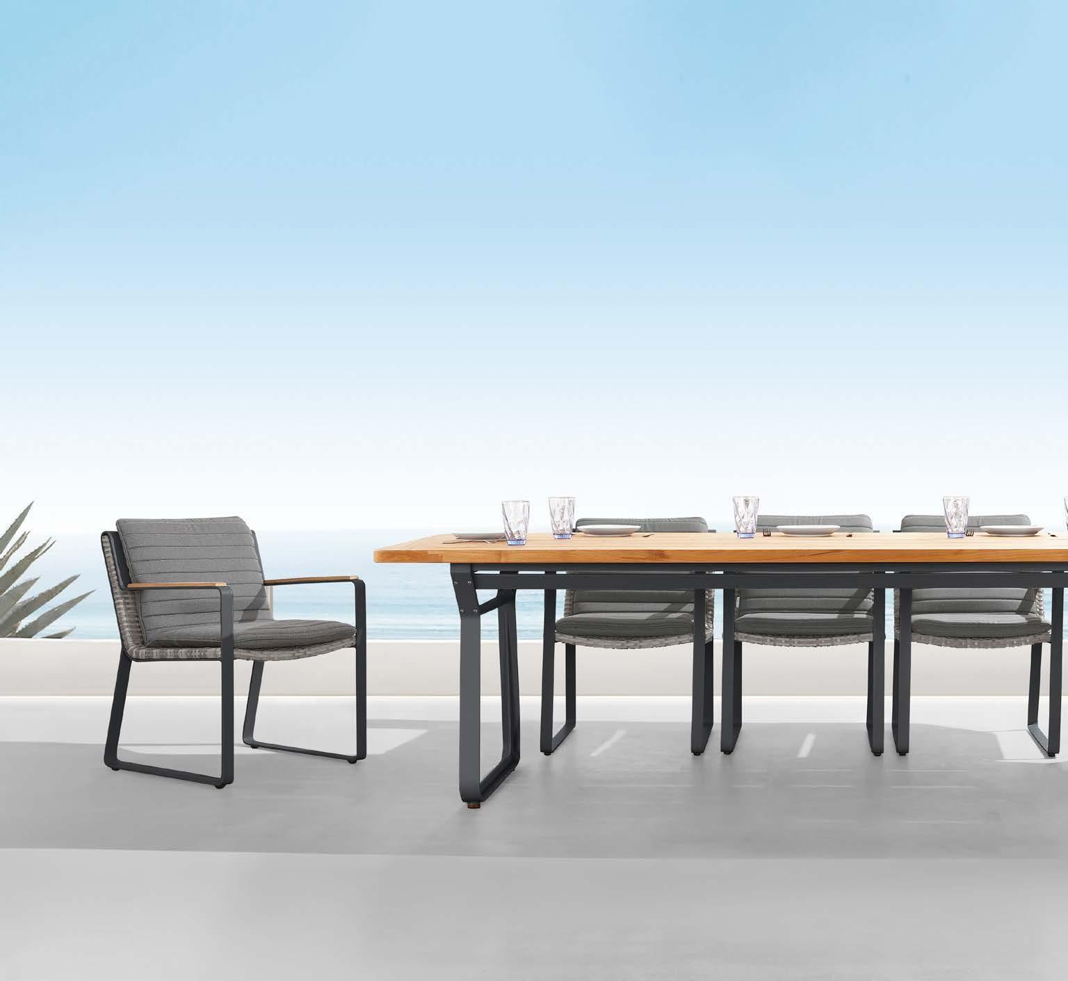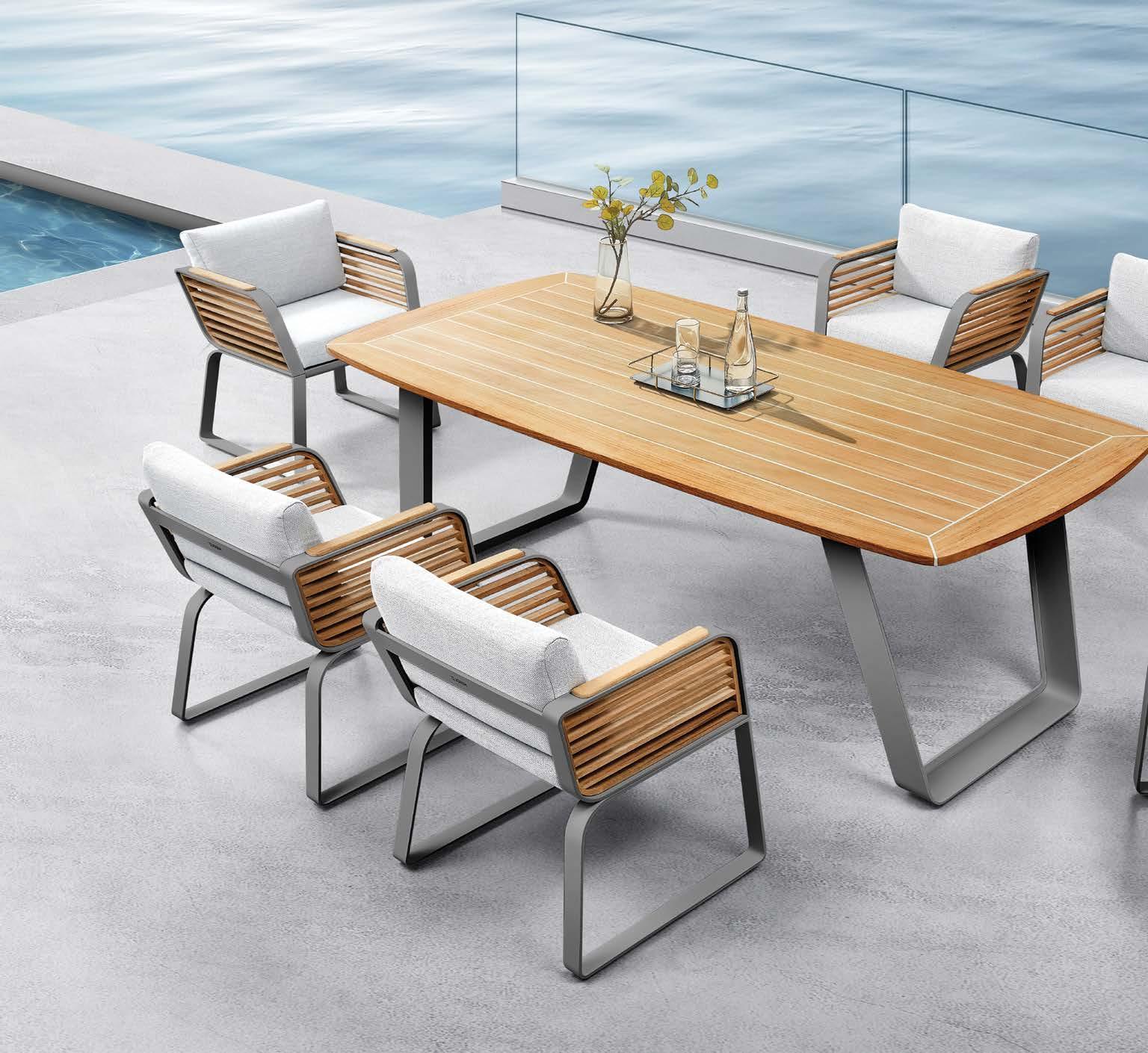 Set BORROMEO, 7 kosov miza 103x217cm, 6x stol z blazinami, aluminij/tik/vrv